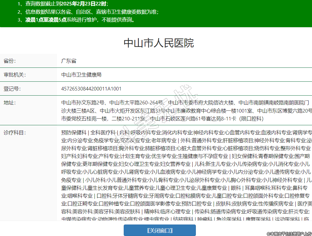 中山市孫文東路2號、中山市太平路260-264號、中山市市委市府大院信訪大樓、中山市南朗鎮(zhèn)南岐路南朗醫(yī)院門診大樓三樓A區(qū)、中山市火炬開發(fā)區(qū)東江路33號中山市廉政教育中心綜合樓一樓1001室、中山市東區(qū)博愛六路20號市委黨校五桂苑一樓,二樓210-211室、中山市石岐區(qū)蓮興路61號喜達(dá)苑8-11卡(限口腔科)