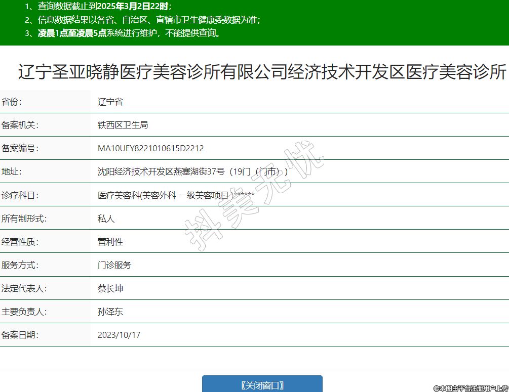 遼寧圣亞曉靜醫(yī)療美容診所有限公司經(jīng)濟技術(shù)開發(fā)區(qū)醫(yī)療美容診所