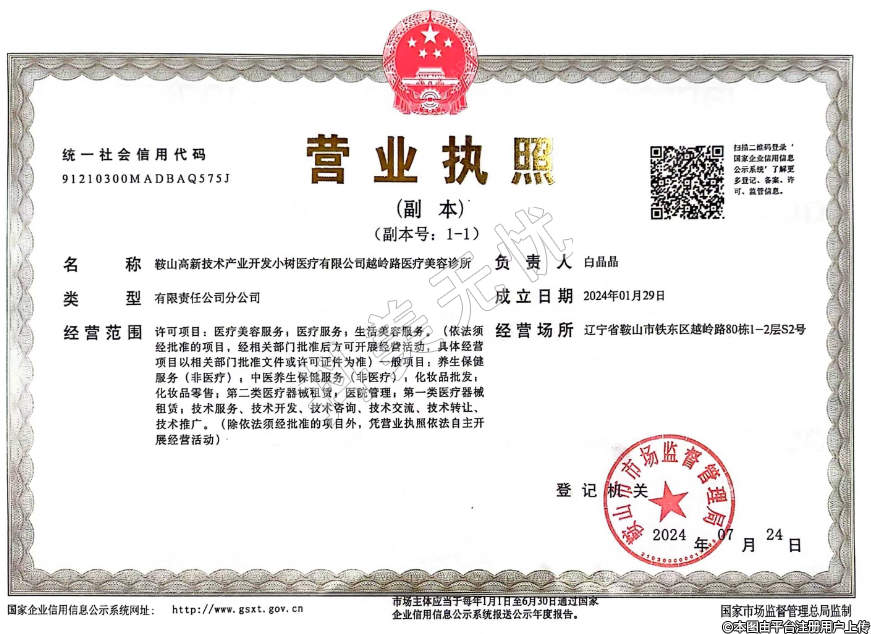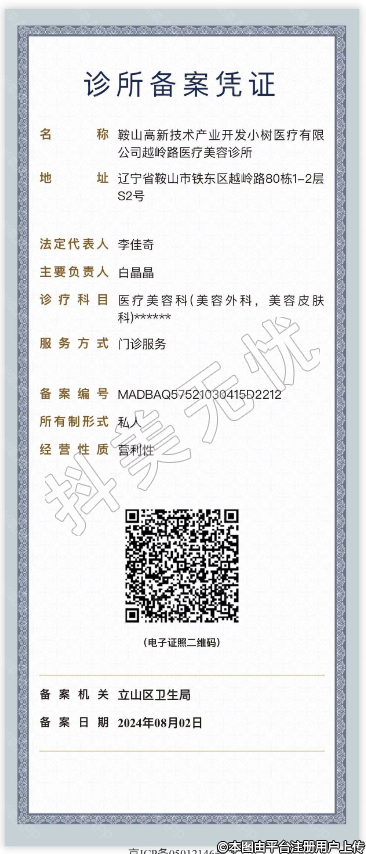 名稱(chēng):鞍山高新技術(shù)產(chǎn)業(yè)開(kāi)發(fā)小樹(shù)醫(yī)療有限公司越嶺路醫(yī)療美容診所