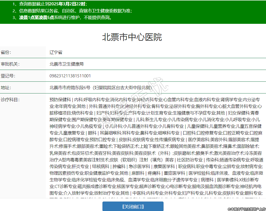 北票市市府路東段6號(hào)(婦嬰院院區(qū)臺(tái)吉大街中段北側(cè))
