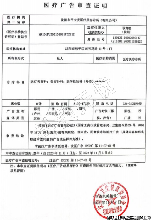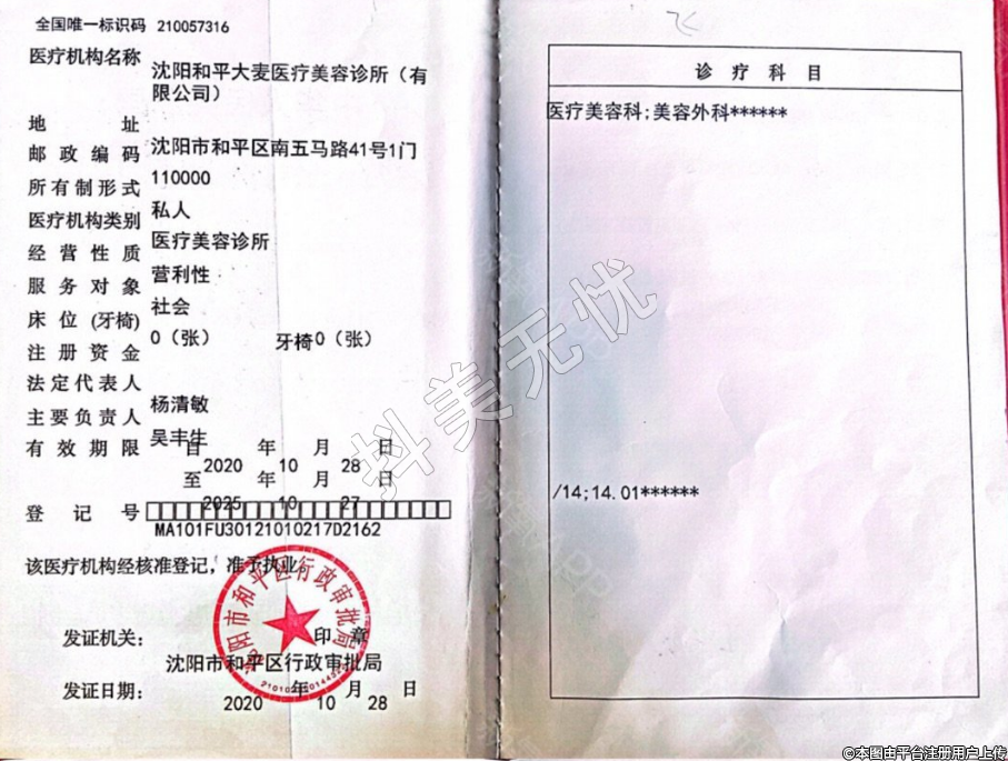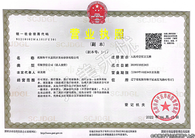 醫(yī)療機(jī)構(gòu)名稱:沈陽(yáng)和平大麥醫(yī)療美容診所(有限公司)