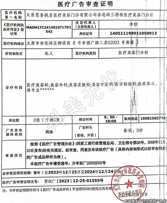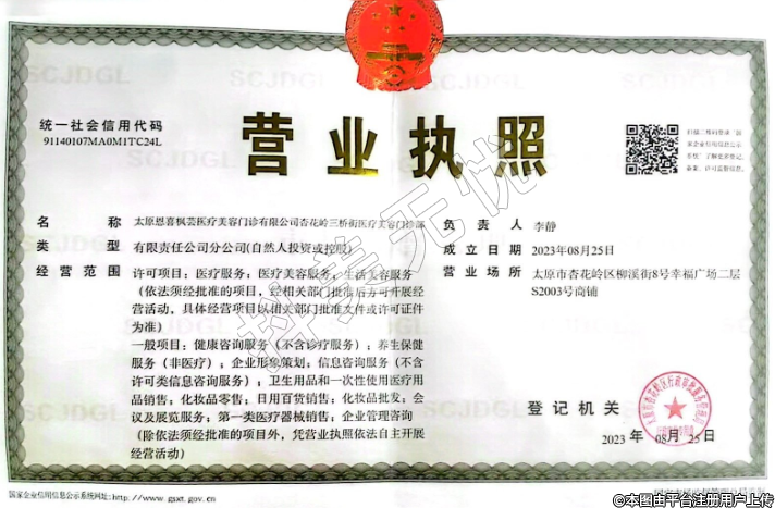 機構(gòu)名稱:太原恩喜楓蕓醫(yī)療美容門診有限公司杏花嶺三橋街醫(yī)療美容門診部