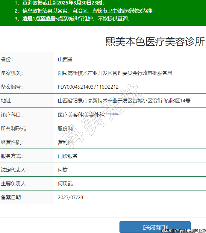 熙美本色醫(yī)療美容診所,診療科目:醫(yī)療美容科(美容外科)******