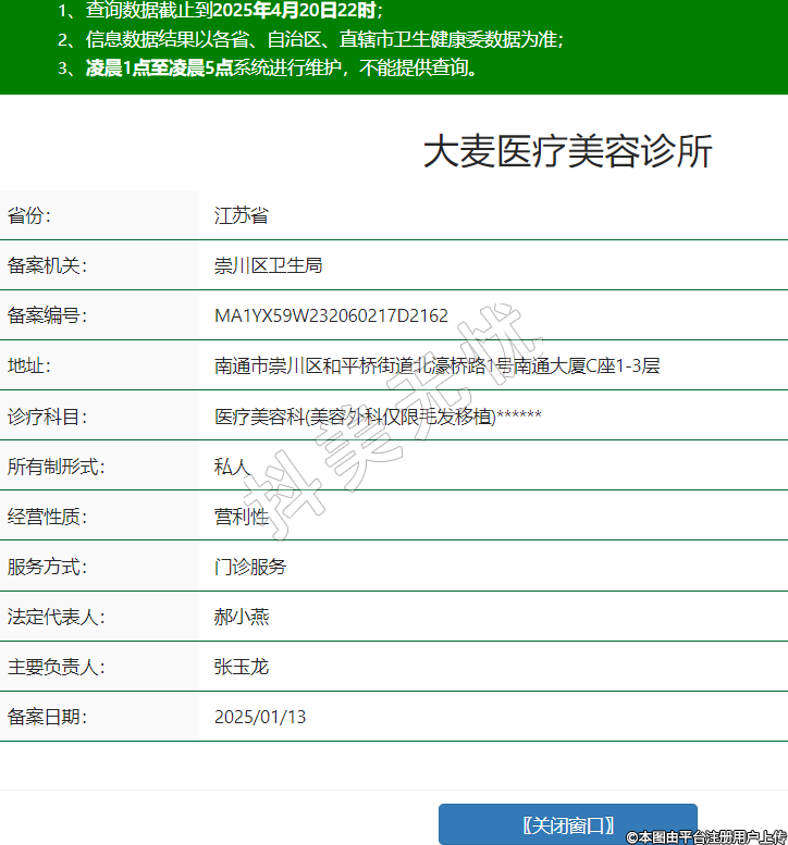 南通大麥醫(yī)療美容,診療科目:醫(yī)療美容科(美容外科僅限毛發(fā)移植)******