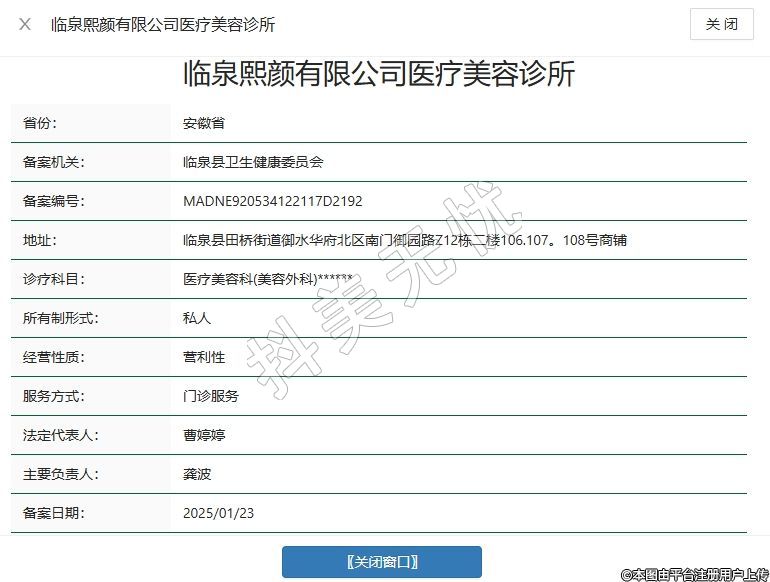 臨泉熙顏醫(yī)療美容診所成立于2024年,坐落于阜陽市臨泉縣田橋街道御水華府北區(qū)南門御園路Z12棟二樓106-108號商鋪。機(jī)構(gòu)以“科學(xué)塑美·定制專屬”為核心理念,匯聚專業(yè)醫(yī)師團(tuán)隊(duì)及國際先進(jìn)設(shè)備,專注微創(chuàng)整形、皮膚年輕化、抗衰管理及個性化醫(yī)美方案設(shè)計(jì)。