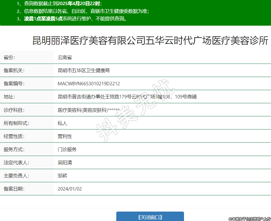 昆明麗澤醫(yī)療美容有限公司五華云時(shí)代廣場(chǎng)醫(yī)療美容診所