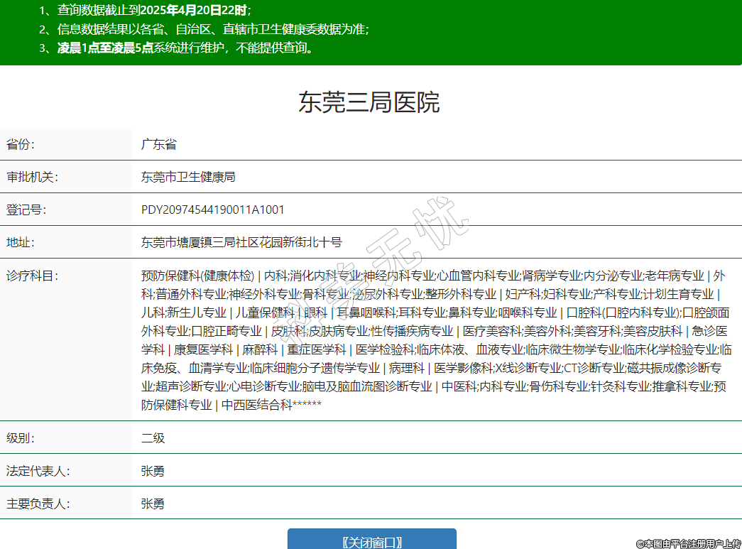 省份:廣東省審批機關:東莞市衛(wèi)生健康局登記號:PDY20974544190011A1001地址:東莞市塘廈鎮(zhèn)三局社區(qū)花園新街北十號診療科目:預防保健科(健康體檢) | 內科;消化內科專業(yè);神經內科專業(yè);心血管內科專業(yè);腎病學專業(yè);內分泌專業(yè);老年病專業(yè) | 外科;普通外科專業(yè);神經外科專業(yè);骨科專業(yè);泌尿外科專業(yè);整形外科專業(yè) | 婦產科;婦科專業(yè);產科專業(yè);計劃生育專業(yè) | 兒科;新生兒專業(yè) | 兒童保健科 | 眼科 | 耳鼻咽喉科;耳科專業(yè);鼻科專業(yè);咽喉科專業(yè) | 口腔科(口腔內科專業(yè));口腔頜面外科專業(yè);口腔正畸專業(yè) | 皮膚科;皮膚病專業(yè);性傳播疾病專業(yè) | 醫(yī)療美容科;美容外科;美容牙科;美容皮膚科 | 急診醫(yī)學科 | 康復醫(yī)學科 | 麻醉科 | 重癥醫(yī)學科 | 醫(yī)學檢驗科;臨床體液、血液專業(yè);臨床微生物學專業(yè);臨床化學檢驗專業(yè);臨床免疫、血清學專業(yè);臨床細胞分子遺傳學專業(yè) | 病理科 | 醫(yī)學影像科;X線診斷專業(yè);CT診斷專業(yè);磁共振成像診斷專業(yè);超聲診斷專業(yè);心電診斷專業(yè);腦電及腦血流圖診斷專業(yè) | 中醫(yī)科;內科專業(yè);骨傷科專業(yè);針灸科專業(yè);推拿科專業(yè);預防保健科專業(yè) | 中西醫(yī)結合科******級別:二級法定代表人:張勇主要負責人:張勇執(zhí)業(yè)許可證有效期:2024/11/05 -至- 2033/12/20 -