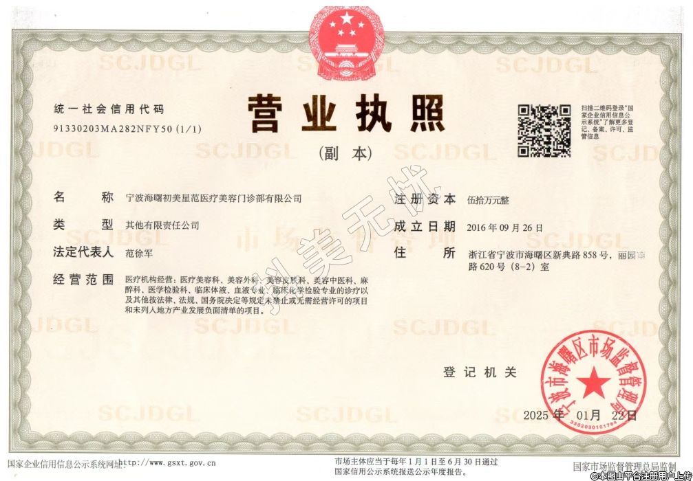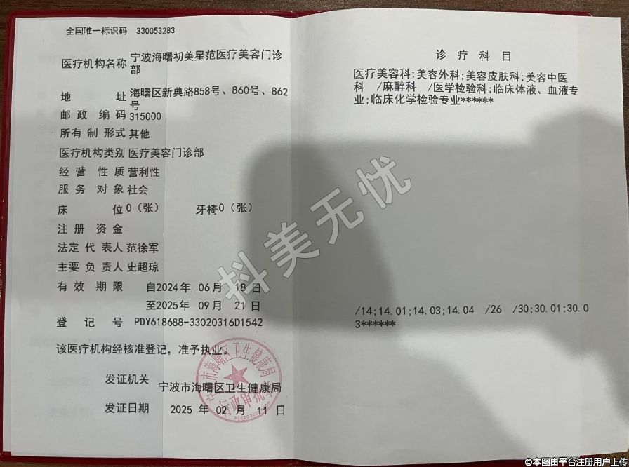 醫(yī)療機(jī)構(gòu)名稱:寧波海曙初美星范醫(yī)療美容門診部