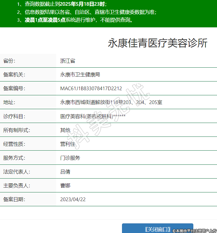 省份:浙江省備案機(jī)關(guān):永康市衛(wèi)生健康局備案編號(hào):MAC61J1B833078417D2212地址:永康市西城街道解放街118號(hào)203、204、205室診療科目:醫(yī)療美容科(美容皮膚科)******所有制形式:其他經(jīng)營(yíng)性質(zhì):營(yíng)利性服務(wù)方式:門診服務(wù)法定代表人:呂倩主要負(fù)責(zé)人:曹娜備案日期:2023/04/22 -