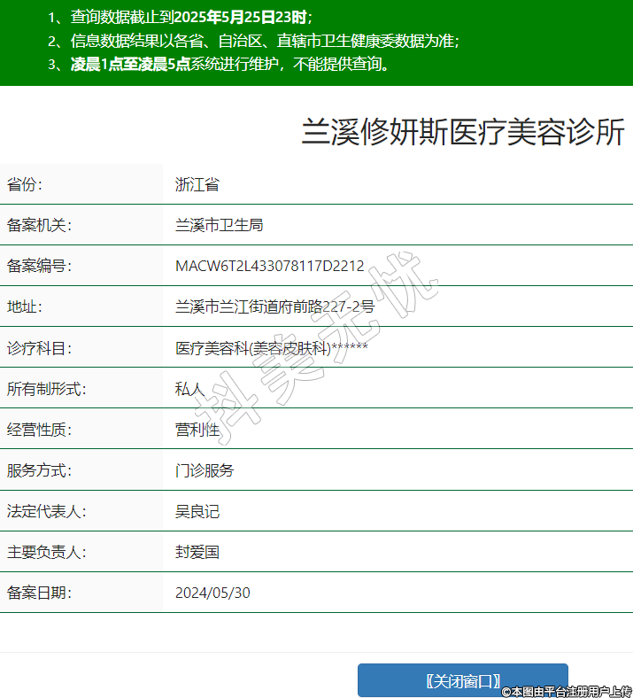 省份:浙江省備案機(jī)關(guān):蘭溪市衛(wèi)生局備案編號(hào):MACW6T2L433078117D2212地址:蘭溪市蘭江街道府前路227-2號(hào)診療科目:醫(yī)療美容科(美容皮膚科)******所有制形式:私人經(jīng)營(yíng)性質(zhì):營(yíng)利性服務(wù)方式:門診服務(wù)法定代表人:吳良記主要負(fù)責(zé)人:封愛國(guó)備案日期:2024/05/30 -