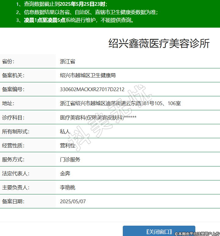 省份:浙江省備案機關:紹興市越城區(qū)衛(wèi)生健康局備案編號:330602MACKXR27017D2212地址:浙江省紹興市越城區(qū)迪蕩街道云東路381號105、106室診療科目:醫(yī)療美容科(僅限美容皮膚科)******所有制形式:私人經(jīng)營性質(zhì):營利性服務方式:門診服務法定代表人:金奔主要負責人:李艷桃備案日期:2025/05/07 -