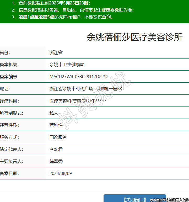 省份:浙江省備案機關(guān):余姚市衛(wèi)生健康局備案編號:MACU27WR-033028117D2212地址:浙江省余姚市時代廣場二期8幢一層B3診療科目:醫(yī)療美容科(美容皮膚科)******所有制形式:私人經(jīng)營性質(zhì):營利性服務(wù)方式:門診服務(wù)法定代表人:李幼君主要負責人:陳軍秀備案日期:2024/08/09 -