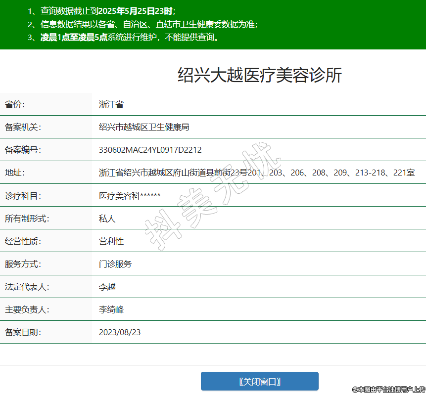省份:浙江省備案機(jī)關(guān):紹興市越城區(qū)衛(wèi)生健康局備案編號(hào):330602MAC24YL0917D2212地址:浙江省紹興市越城區(qū)府山街道縣前街23號(hào)201、203、206、208、209、213-218、221室診療科目:醫(yī)療美容科******所有制形式:私人經(jīng)營(yíng)性質(zhì):營(yíng)利性服務(wù)方式:門診服務(wù)法定代表人:李越主要負(fù)責(zé)人:李綺峰備案日期:2023/08/23 -