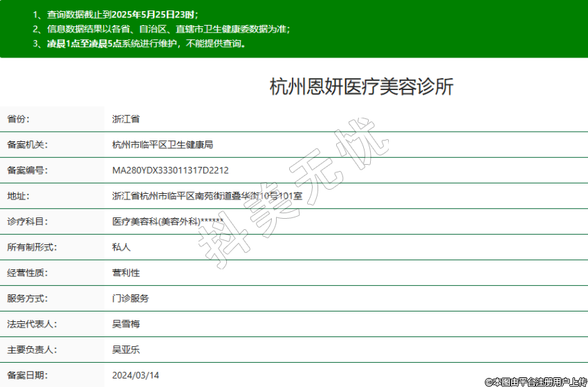 省份:浙江省備案機(jī)關(guān):杭州市臨平區(qū)衛(wèi)生健康局備案編號:MA280YDX333011317D2212地址:浙江省杭州市臨平區(qū)南苑街道疊華街10號101室診療科目:醫(yī)療美容科(美容外科)******所有制形式:私人經(jīng)營性質(zhì):營利性服務(wù)方式:門診服務(wù)法定代表人:吳雪梅主要負(fù)責(zé)人:吳亞樂備案日期:2024/03/14
