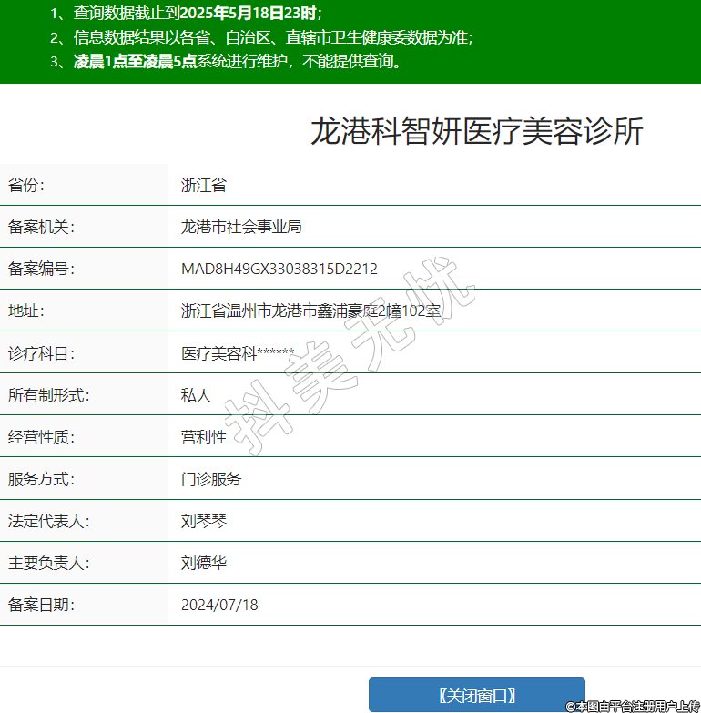 省份:浙江省備案機(jī)關(guān):龍港市社會(huì)事業(yè)局備案編號(hào):MAD8H49GX33038315D2212地址:浙江省溫州市龍港市鑫浦豪庭2幢102室診療科目:醫(yī)療美容科******所有制形式:私人經(jīng)營性質(zhì):營利性服務(wù)方式:門診服務(wù)法定代表人:劉琴琴主要負(fù)責(zé)人:劉德華備案日期:2024/07/18 -