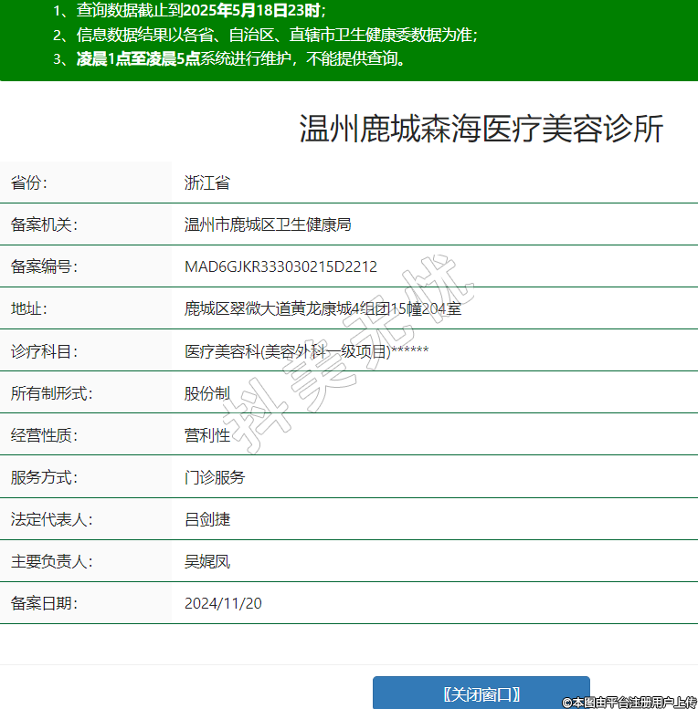 省份:浙江省備案機關:溫州市鹿城區(qū)衛(wèi)生健康局備案編號:MAD6GJKR333030215D2212地址:鹿城區(qū)翠微大道黃龍康城4組團15幢204室診療科目:醫(yī)療美容科(美容外科一級項目)******所有制形式:股份制經營性質:營利性服務方式:門診服務法定代表人:呂劍捷主要負責人:吳娓鳳備案日期:2024/11/20 -