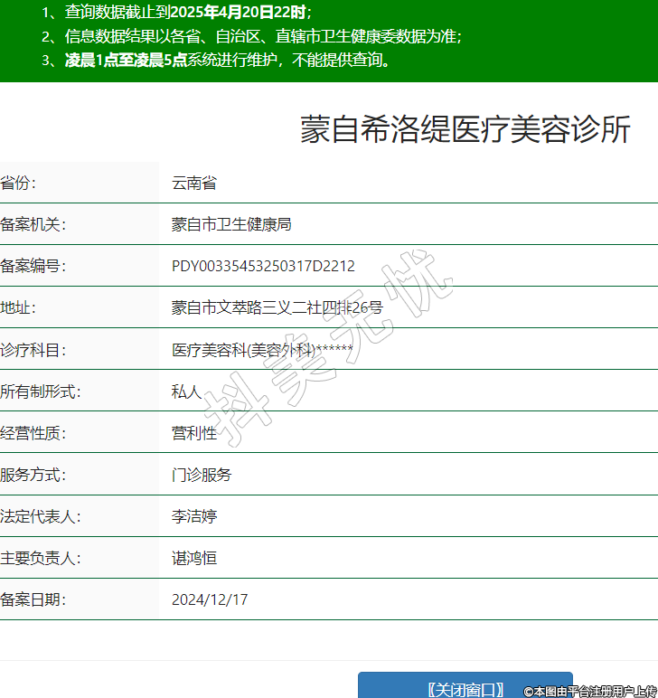 蒙自希洛緹醫(yī)療美容診所,診療科目:醫(yī)療美容科(美容外科)******
