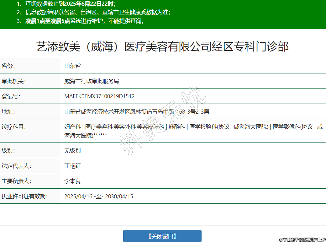 藝添致美(威海)醫(yī)療美容有限公司經(jīng)區(qū)??崎T診部