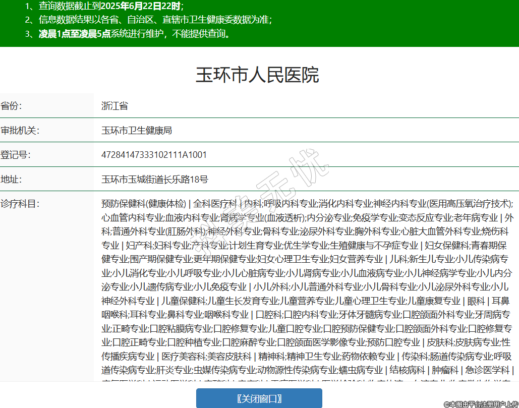 省份:浙江省審批機(jī)關(guān):玉環(huán)市衛(wèi)生健康局登記號(hào):47284147333102111A1001地址:玉環(huán)市玉城街道長(zhǎng)樂(lè)路18號(hào)診療科目:預(yù)防保健科(健康體檢) | 全科醫(yī)療科 | 內(nèi)科;呼吸內(nèi)科專業(yè);消化內(nèi)科專業(yè);神經(jīng)內(nèi)科專業(yè)(醫(yī)用高壓氧治療技術(shù));心血管內(nèi)科專業(yè);血液內(nèi)科專業(yè);腎病學(xué)專業(yè)(血液透析);內(nèi)分泌專業(yè);免疫學(xué)專業(yè);變態(tài)反應(yīng)專業(yè);老年病專業(yè) | 外科;普通外科專業(yè)(肛腸外科);神經(jīng)外科專業(yè);骨科專業(yè);泌尿外科專業(yè);胸外科專業(yè);心臟大血管外科專業(yè);燒傷科專業(yè) | 婦產(chǎn)科;婦科專業(yè);產(chǎn)科專業(yè);計(jì)劃生育專業(yè);優(yōu)生學(xué)專業(yè);生殖健康與不孕癥專業(yè) | 婦女保健科;青春期保健專業(yè);圍產(chǎn)期保健專業(yè);更年期保健專業(yè);婦女心理衛(wèi)生專業(yè);婦女營(yíng)養(yǎng)專業(yè) | 兒科;新生兒專業(yè);小兒傳染病專業(yè);小兒消化專業(yè);小兒呼吸專業(yè);小兒心臟病專業(yè);小兒腎病專業(yè);小兒血液病專業(yè);小兒神經(jīng)病學(xué)專業(yè);小兒內(nèi)分泌專業(yè);小兒遺傳病專業(yè);小兒免疫專業(yè) | 小兒外科;小兒普通外科專業(yè);小兒骨科專業(yè);小兒泌尿外科專業(yè);小兒神經(jīng)外科專業(yè) | 兒童保健科;兒童生長(zhǎng)發(fā)育專業(yè);兒童營(yíng)養(yǎng)專業(yè);兒童心理衛(wèi)生專業(yè);兒童康復(fù)專業(yè) | 眼科 | 耳鼻咽喉科;耳科專業(yè);鼻科專業(yè);咽喉科專業(yè) | 口腔科;口腔內(nèi)科專業(yè);牙體牙髓病專業(yè);口腔頜面外科專業(yè);牙周病專業(yè);正畸專業(yè);口腔粘膜病專業(yè);口腔修復(fù)專業(yè);兒童口腔專業(yè);口腔預(yù)防保健專業(yè);口腔頜面外科專業(yè);口腔修復(fù)專業(yè);口腔正畸專業(yè);口腔種植專業(yè);口腔麻醉專業(yè);口腔頜面醫(yī)學(xué)影像專業(yè);預(yù)防口腔專業(yè) | 皮膚科;皮膚病專業(yè);性傳播疾病專業(yè) | 醫(yī)療美容科;美容皮膚科 | 精神科;精神衛(wèi)生專業(yè);藥物依賴專業(yè) | 傳染科;腸道傳染病專業(yè);呼吸道傳染病專業(yè);肝炎專業(yè);蟲媒傳染病專業(yè);動(dòng)物源性傳染病專業(yè);蠕蟲病專業(yè) | 結(jié)核病科 | 腫瘤科 | 急診醫(yī)學(xué)科 | 康復(fù)醫(yī)學(xué)科 | 運(yùn)動(dòng)醫(yī)學(xué)科 | 麻醉科 | 疼痛科 | 重癥醫(yī)學(xué)科 | 醫(yī)學(xué)檢驗(yàn)科;臨床體液、血液專業(yè);臨床微生物學(xué)專業(yè);臨床化學(xué)檢驗(yàn)專業(yè);臨床免疫、血清學(xué)專業(yè);臨床細(xì)胞分子遺傳學(xué)專業(yè) | 病理科 | 醫(yī)學(xué)影像科;X線診斷專業(yè);CT診斷專業(yè);磁共振成像診斷專業(yè);超聲診斷專業(yè);心電診斷專業(yè);腦電及腦血流圖診斷專業(yè);神經(jīng)肌肉電圖專業(yè);介入放射學(xué)專業(yè) | 中醫(yī)科;內(nèi)科專業(yè);外科專業(yè);婦產(chǎn)科專業(yè);兒科專業(yè);皮膚科專業(yè);眼科專業(yè);耳鼻咽喉科專業(yè);腫瘤科專業(yè);骨傷科專業(yè);針灸科專業(yè);推拿科專業(yè);康復(fù)醫(yī)學(xué)專業(yè) | 中西醫(yī)結(jié)合科******級(jí)別:三級(jí)法定代表人:董寅主要負(fù)責(zé)人:陳增瑞執(zhí)業(yè)許可證有效期:2021/05/31 -至- 2034/05/22 -