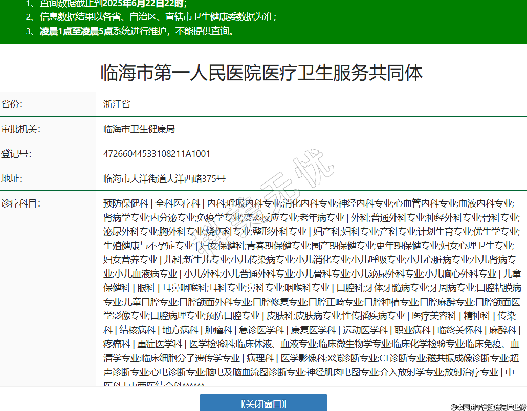 省份:浙江省審批機(jī)關(guān):臨海市衛(wèi)生健康局登記號(hào):47266044533108211A1001地址:臨海市大洋街道大洋西路375號(hào)診療科目:預(yù)防保健科 | 全科醫(yī)療科 | 內(nèi)科;呼吸內(nèi)科專(zhuān)業(yè);消化內(nèi)科專(zhuān)業(yè);神經(jīng)內(nèi)科專(zhuān)業(yè);心血管內(nèi)科專(zhuān)業(yè);血液內(nèi)科專(zhuān)業(yè);腎病學(xué)專(zhuān)業(yè);內(nèi)分泌專(zhuān)業(yè);免疫學(xué)專(zhuān)業(yè);變態(tài)反應(yīng)專(zhuān)業(yè);老年病專(zhuān)業(yè) | 外科;普通外科專(zhuān)業(yè);神經(jīng)外科專(zhuān)業(yè);骨科專(zhuān)業(yè);泌尿外科專(zhuān)業(yè);胸外科專(zhuān)業(yè);燒傷科專(zhuān)業(yè);整形外科專(zhuān)業(yè) | 婦產(chǎn)科;婦科專(zhuān)業(yè);產(chǎn)科專(zhuān)業(yè);計(jì)劃生育專(zhuān)業(yè);優(yōu)生學(xué)專(zhuān)業(yè);生殖健康與不孕癥專(zhuān)業(yè) | 婦女保健科;青春期保健專(zhuān)業(yè);圍產(chǎn)期保健專(zhuān)業(yè);更年期保健專(zhuān)業(yè);婦女心理衛(wèi)生專(zhuān)業(yè);婦女營(yíng)養(yǎng)專(zhuān)業(yè) | 兒科;新生兒專(zhuān)業(yè);小兒傳染病專(zhuān)業(yè);小兒消化專(zhuān)業(yè);小兒呼吸專(zhuān)業(yè);小兒心臟病專(zhuān)業(yè);小兒腎病專(zhuān)業(yè);小兒血液病專(zhuān)業(yè) | 小兒外科;小兒普通外科專(zhuān)業(yè);小兒骨科專(zhuān)業(yè);小兒泌尿外科專(zhuān)業(yè);小兒胸心外科專(zhuān)業(yè) | 兒童保健科 | 眼科 | 耳鼻咽喉科;耳科專(zhuān)業(yè);鼻科專(zhuān)業(yè);咽喉科專(zhuān)業(yè) | 口腔科;牙體牙髓病專(zhuān)業(yè);牙周病專(zhuān)業(yè);口腔粘膜病專(zhuān)業(yè);兒童口腔專(zhuān)業(yè);口腔頜面外科專(zhuān)業(yè);口腔修復(fù)專(zhuān)業(yè);口腔正畸專(zhuān)業(yè);口腔種植專(zhuān)業(yè);口腔麻醉專(zhuān)業(yè);口腔頜面醫(yī)學(xué)影像專(zhuān)業(yè);口腔病理專(zhuān)業(yè);預(yù)防口腔專(zhuān)業(yè) | 皮膚科;皮膚病專(zhuān)業(yè);性傳播疾病專(zhuān)業(yè) | 醫(yī)療美容科 | 精神科 | 傳染科 | 結(jié)核病科 | 地方病科 | 腫瘤科 | 急診醫(yī)學(xué)科 | 康復(fù)醫(yī)學(xué)科 | 運(yùn)動(dòng)醫(yī)學(xué)科 | 職業(yè)病科 | 臨終關(guān)懷科 | 麻醉科 | 疼痛科 | 重癥醫(yī)學(xué)科 | 醫(yī)學(xué)檢驗(yàn)科;臨床體液、血液專(zhuān)業(yè);臨床微生物學(xué)專(zhuān)業(yè);臨床化學(xué)檢驗(yàn)專(zhuān)業(yè);臨床免疫、血清學(xué)專(zhuān)業(yè);臨床細(xì)胞分子遺傳學(xué)專(zhuān)業(yè) | 病理科 | 醫(yī)學(xué)影像科;X線(xiàn)診斷專(zhuān)業(yè);CT診斷專(zhuān)業(yè);磁共振成像診斷專(zhuān)業(yè);超聲診斷專(zhuān)業(yè);心電診斷專(zhuān)業(yè);腦電及腦血流圖診斷專(zhuān)業(yè);神經(jīng)肌肉電圖專(zhuān)業(yè);介入放射學(xué)專(zhuān)業(yè);放射治療專(zhuān)業(yè) | 中醫(yī)科 | 中西醫(yī)結(jié)合科******級(jí)別:二級(jí)法定代表人:王宇光主要負(fù)責(zé)人:王宇光執(zhí)業(yè)許可證有效期:2022/08/29 -至- 2033/06/07 -