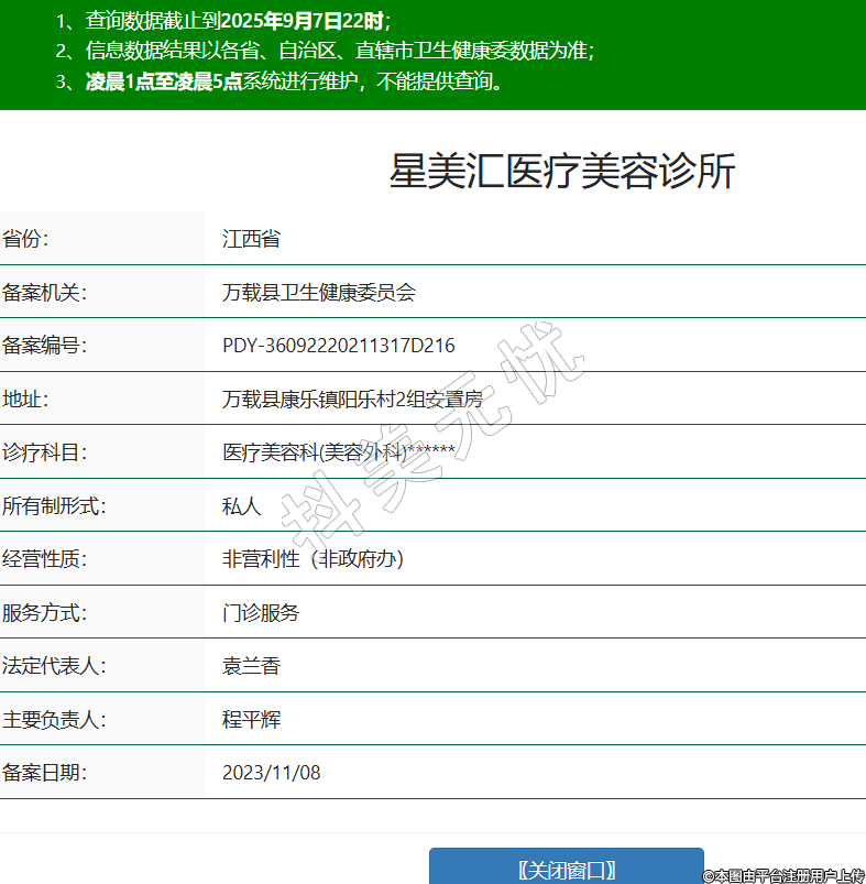 省份:江西省備案機(jī)關(guān):萬載縣衛(wèi)生健康委員會(huì)備案編號:PDY-36092220211317D216地址:萬載縣康樂鎮(zhèn)陽樂村2組安置房診療科目:醫(yī)療美容科(美容外科)******所有制形式:私人經(jīng)營性質(zhì):非營利性(非政府辦)服務(wù)方式:門診服務(wù)法定代表人:袁蘭香主要負(fù)責(zé)人:程平輝備案日期:2023/11/08 -
