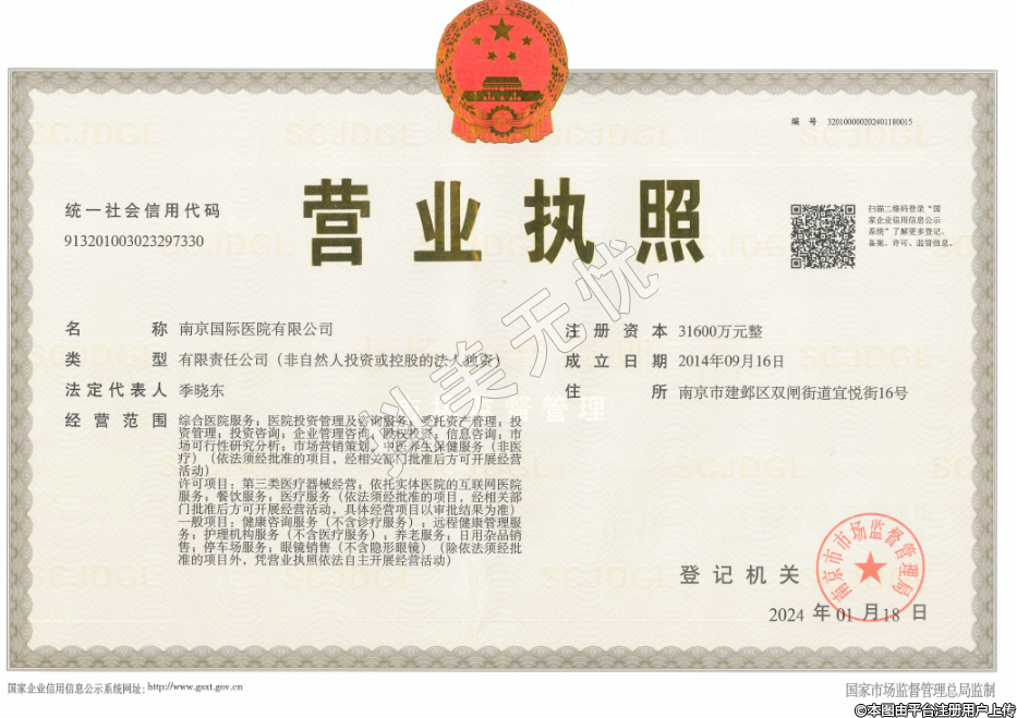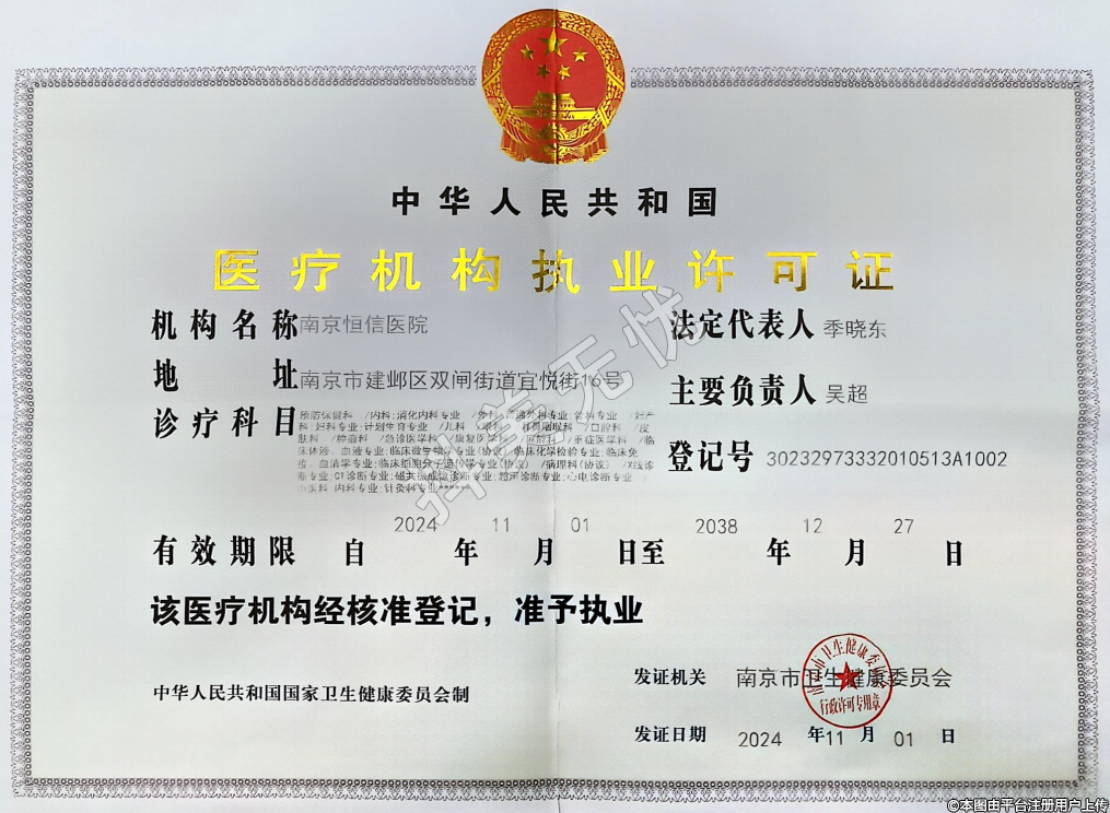 發(fā)證機關:南京市衛(wèi)生健康委員會