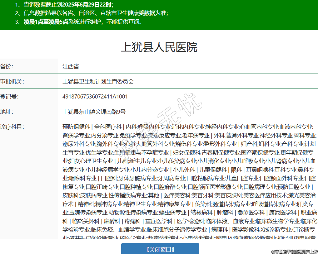 省份:江西省審批機(jī)關(guān):上猶縣衛(wèi)生和計(jì)劃生育委員會(huì)登記號(hào):49187067536072411A1001地址:上猶縣東山鎮(zhèn)文錦南路9號(hào)診療科目:預(yù)防保健科 | 全科醫(yī)療科 | 內(nèi)科;呼吸內(nèi)科專(zhuān)業(yè);消化內(nèi)科專(zhuān)業(yè);神經(jīng)內(nèi)科專(zhuān)業(yè);心血管內(nèi)科專(zhuān)業(yè);血液內(nèi)科專(zhuān)業(yè);腎病學(xué)專(zhuān)業(yè);內(nèi)分泌專(zhuān)業(yè);免疫學(xué)專(zhuān)業(yè);變態(tài)反應(yīng)專(zhuān)業(yè);老年病專(zhuān)業(yè) | 外科;普通外科專(zhuān)業(yè);神經(jīng)外科專(zhuān)業(yè);骨科專(zhuān)業(yè);泌尿外科專(zhuān)業(yè);胸外科專(zhuān)業(yè);心臟大血管外科專(zhuān)業(yè);燒傷科專(zhuān)業(yè);整形外科專(zhuān)業(yè) | 婦產(chǎn)科;婦科專(zhuān)業(yè);產(chǎn)科專(zhuān)業(yè);計(jì)劃生育專(zhuān)業(yè);優(yōu)生學(xué)專(zhuān)業(yè);生殖健康與不孕癥專(zhuān)業(yè) | 婦女保健科;青春期保健專(zhuān)業(yè);圍產(chǎn)期保健專(zhuān)業(yè);更年期保健專(zhuān)業(yè);婦女心理衛(wèi)生專(zhuān)業(yè) | 兒科;新生兒專(zhuān)業(yè);小兒傳染病專(zhuān)業(yè);小兒消化專(zhuān)業(yè);小兒呼吸專(zhuān)業(yè);小兒腎病專(zhuān)業(yè);小兒血液病專(zhuān)業(yè);小兒神經(jīng)病學(xué)專(zhuān)業(yè);小兒內(nèi)分泌專(zhuān)業(yè) | 小兒外科 | 兒童保健科 | 眼科 | 耳鼻咽喉科;耳科專(zhuān)業(yè);鼻科專(zhuān)業(yè);咽喉科專(zhuān)業(yè) | 口腔科;牙體牙髓病專(zhuān)業(yè);牙周病專(zhuān)業(yè);口腔粘膜病專(zhuān)業(yè);兒童口腔專(zhuān)業(yè);口腔頜面外科專(zhuān)業(yè);口腔修復(fù)專(zhuān)業(yè);口腔正畸專(zhuān)業(yè);口腔種植專(zhuān)業(yè);口腔麻醉專(zhuān)業(yè);口腔頜面醫(yī)學(xué)影像專(zhuān)業(yè);口腔病理專(zhuān)業(yè);預(yù)防口腔專(zhuān)業(yè) | 皮膚科;皮膚病專(zhuān)業(yè);性傳播疾病專(zhuān)業(yè);其他 | 醫(yī)療美容科;美容牙科;美容皮膚科;美容醫(yī)療應(yīng)用技術(shù);激光美容治療術(shù) | 精神科;精神病專(zhuān)業(yè);精神衛(wèi)生專(zhuān)業(yè);精神康復(fù)專(zhuān)業(yè) | 傳染科;腸道傳染病專(zhuān)業(yè);呼吸道傳染病專(zhuān)業(yè);肝炎專(zhuān)業(yè);蟲(chóng)媒傳染病專(zhuān)業(yè);動(dòng)物源性傳染病專(zhuān)業(yè);蠕蟲(chóng)病專(zhuān)業(yè) | 結(jié)核病科 | 腫瘤科 | 急診醫(yī)學(xué)科 | 康復(fù)醫(yī)學(xué)科 | 職業(yè)病科 | 臨終關(guān)懷科 | 麻醉科 | 疼痛科 | 重癥醫(yī)學(xué)科 | 醫(yī)學(xué)檢驗(yàn)科;臨床體液、血液專(zhuān)業(yè);臨床微生物學(xué)專(zhuān)業(yè);臨床化學(xué)檢驗(yàn)專(zhuān)業(yè);臨床免疫、血清學(xué)專(zhuān)業(yè);臨床細(xì)胞分子遺傳學(xué)專(zhuān)業(yè) | 病理科 | 醫(yī)學(xué)影像科;X線(xiàn)診斷專(zhuān)業(yè);CT診斷專(zhuān)業(yè);磁共振成像診斷專(zhuān)業(yè);核醫(yī)學(xué)專(zhuān)業(yè);超聲診斷專(zhuān)業(yè);心電診斷專(zhuān)業(yè);腦電及腦血流圖診斷專(zhuān)業(yè);神經(jīng)肌肉電圖專(zhuān)業(yè);介入放射學(xué)專(zhuān)業(yè);放射治療專(zhuān)業(yè) | 中醫(yī)科;內(nèi)科專(zhuān)業(yè);外科專(zhuān)業(yè);婦產(chǎn)科專(zhuān)業(yè);兒科專(zhuān)業(yè);皮膚科專(zhuān)業(yè);腫瘤科專(zhuān)業(yè);骨傷科專(zhuān)業(yè);肛腸科專(zhuān)業(yè);老年病科專(zhuān)業(yè);針灸科專(zhuān)業(yè);推拿科專(zhuān)業(yè);康復(fù)醫(yī)學(xué)專(zhuān)業(yè);急診科專(zhuān)業(yè);預(yù)防保健科專(zhuān)業(yè) | 中西醫(yī)結(jié)合科******級(jí)別:三級(jí)法定代表人:蔡聯(lián)劍主要負(fù)責(zé)人:蔡聯(lián)劍執(zhí)業(yè)許可證有效期:2022/11/29 -至- 2027/12/31 -