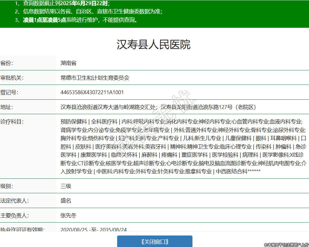 省份:湖南省審批機(jī)關(guān):常德市衛(wèi)生和計(jì)劃生育委員會(huì)登記號(hào):44653586X43072211A1001地址:漢壽縣滄浪街道漢壽大道與嶺湖路交匯處;漢壽縣龍陽(yáng)街道滄浪東路127號(hào)(老院區(qū))診療科目:預(yù)防保健科 | 全科醫(yī)療科 | 內(nèi)科;呼吸內(nèi)科專業(yè);消化內(nèi)科專業(yè);神經(jīng)內(nèi)科專業(yè);心血管內(nèi)科專業(yè);血液內(nèi)科專業(yè);腎病學(xué)專業(yè);內(nèi)分泌專業(yè);免疫學(xué)專業(yè);老年病專業(yè) | 外科;普通外科專業(yè);神經(jīng)外科專業(yè);骨科專業(yè);泌尿外科專業(yè);胸外科專業(yè);燒傷科專業(yè) | 婦產(chǎn)科;婦科專業(yè);產(chǎn)科專業(yè) | 兒科;新生兒專業(yè) | 兒童保健科 | 眼科 | 耳鼻咽喉科 | 口腔科 | 皮膚科 | 醫(yī)療美容科;美容外科;美容牙科 | 精神科;精神衛(wèi)生專業(yè);臨床心理專業(yè) | 傳染科 | 腫瘤科 | 急診醫(yī)學(xué)科 | 康復(fù)醫(yī)學(xué)科 | 臨終關(guān)懷科 | 麻醉科 | 疼痛科 | 重癥醫(yī)學(xué)科 | 醫(yī)學(xué)檢驗(yàn)科 | 病理科 | 醫(yī)學(xué)影像科;X線診斷專業(yè);CT診斷專業(yè);核醫(yī)學(xué)專業(yè);超聲診斷專業(yè);心電診斷專業(yè);腦電及腦血流圖診斷專業(yè);神經(jīng)肌肉電圖專業(yè);介入放射學(xué)專業(yè) | 中醫(yī)科;內(nèi)科專業(yè);外科專業(yè);針灸科專業(yè);推拿科專業(yè) | 中西醫(yī)結(jié)合科******級(jí)別:三級(jí)法定代表人:盛名主要負(fù)責(zé)人:張先冬執(zhí)業(yè)許可證有效期:2020/08/25 -至- 2035/08/24 -