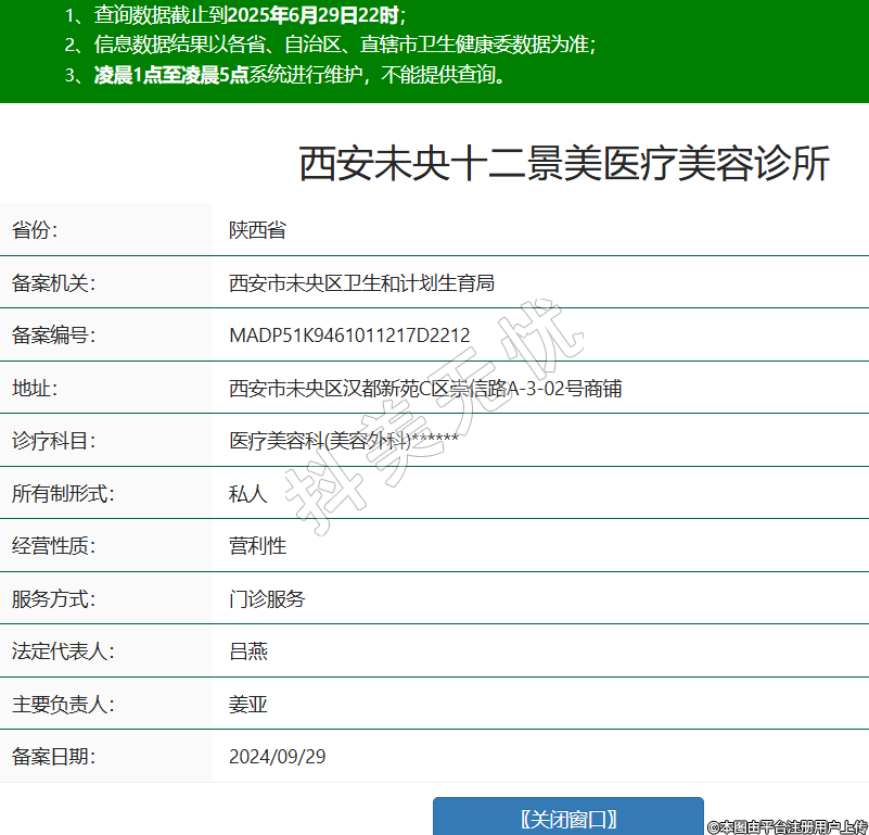 省份:陜西省備案機(jī)關(guān):西安市未央?yún)^(qū)衛(wèi)生和計(jì)劃生育局備案編號:MADP51K9461011217D2212地址:西安市未央?yún)^(qū)漢都新苑C區(qū)崇信路A-3-02號商鋪診療科目:醫(yī)療美容科(美容外科)******所有制形式:私人經(jīng)營性質(zhì):營利性服務(wù)方式:門診服務(wù)法定代表人:呂燕主要負(fù)責(zé)人:姜亞備案日期:2024/09/29 -