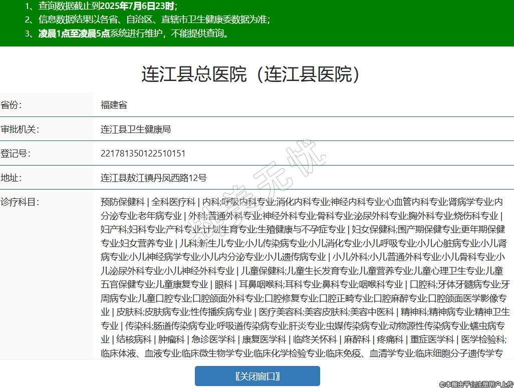 省份:福建省審批機(jī)關(guān):連江縣衛(wèi)生健康局登記號(hào):221781350122510151地址:連江縣敖江鎮(zhèn)丹鳳西路12號(hào)診療科目:預(yù)防保健科 | 全科醫(yī)療科 | 內(nèi)科;呼吸內(nèi)科專業(yè);消化內(nèi)科專業(yè);神經(jīng)內(nèi)科專業(yè);心血管內(nèi)科專業(yè);腎病學(xué)專業(yè);內(nèi)分泌專業(yè);老年病專業(yè) | 外科;普通外科專業(yè);神經(jīng)外科專業(yè);骨科專業(yè);泌尿外科專業(yè);胸外科專業(yè);燒傷科專業(yè) | 婦產(chǎn)科;婦科專業(yè);產(chǎn)科專業(yè);計(jì)劃生育專業(yè);生殖健康與不孕癥專業(yè) | 婦女保健科;圍產(chǎn)期保健專業(yè);更年期保健專業(yè);婦女營養(yǎng)專業(yè) | 兒科;新生兒專業(yè);小兒傳染病專業(yè);小兒消化專業(yè);小兒呼吸專業(yè);小兒心臟病專業(yè);小兒腎病專業(yè);小兒神經(jīng)病學(xué)專業(yè);小兒內(nèi)分泌專業(yè);小兒遺傳病專業(yè) | 小兒外科;小兒普通外科專業(yè);小兒骨科專業(yè);小兒泌尿外科專業(yè);小兒神經(jīng)外科專業(yè) | 兒童保健科;兒童生長發(fā)育專業(yè);兒童營養(yǎng)專業(yè);兒童心理衛(wèi)生專業(yè);兒童五官保健專業(yè);兒童康復(fù)專業(yè) | 眼科 | 耳鼻咽喉科;耳科專業(yè);鼻科專業(yè);咽喉科專業(yè) | 口腔科;牙體牙髓病專業(yè);牙周病專業(yè);兒童口腔專業(yè);口腔頜面外科專業(yè);口腔修復(fù)專業(yè);口腔正畸專業(yè);口腔麻醉專業(yè);口腔頜面醫(yī)學(xué)影像專業(yè) | 皮膚科;皮膚病專業(yè);性傳播疾病專業(yè) | 醫(yī)療美容科;美容皮膚科;美容中醫(yī)科 | 精神科;精神病專業(yè);精神衛(wèi)生專業(yè) | 傳染科;腸道傳染病專業(yè);呼吸道傳染病專業(yè);肝炎專業(yè);蟲媒傳染病專業(yè);動(dòng)物源性傳染病專業(yè);蠕蟲病專業(yè) | 結(jié)核病科 | 腫瘤科 | 急診醫(yī)學(xué)科 | 康復(fù)醫(yī)學(xué)科 | 臨終關(guān)懷科 | 麻醉科 | 疼痛科 | 重癥醫(yī)學(xué)科 | 醫(yī)學(xué)檢驗(yàn)科;臨床體液、血液專業(yè);臨床微生物學(xué)專業(yè);臨床化學(xué)檢驗(yàn)專業(yè);臨床免疫、血清學(xué)專業(yè);臨床細(xì)胞分子遺傳學(xué)專業(yè) | 病理科 | 醫(yī)學(xué)影像科;X線診斷專業(yè);CT診斷專業(yè);磁共振成像診斷專業(yè);超聲診斷專業(yè);心電診斷專業(yè);腦電及腦血流圖診斷專業(yè);介入放射學(xué)專業(yè) | 中醫(yī)科;內(nèi)科專業(yè);外科專業(yè);婦產(chǎn)科專業(yè);兒科專業(yè);腫瘤科專業(yè);骨傷科專業(yè);肛腸科專業(yè);老年病科專業(yè);針灸科專業(yè);推拿科專業(yè);康復(fù)醫(yī)學(xué)專業(yè);急診科專業(yè) | 中西醫(yī)結(jié)合科******級(jí)別:二級(jí)法定代表人:鄭宇韜主要負(fù)責(zé)人:鄭宇韜執(zhí)業(yè)許可證有效期:2025/02/08 -至- 2031/02/07 -
