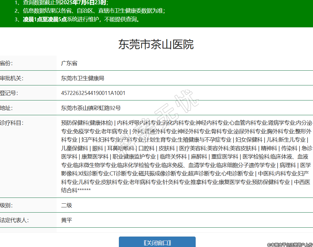 省份:廣東省審批機(jī)關(guān):東莞市衛(wèi)生健康局登記號(hào):45722632544190011A1001地址:東莞市茶山鎮(zhèn)彩虹路92號(hào)診療科目:預(yù)防保健科(健康體檢) | 內(nèi)科;呼吸內(nèi)科專業(yè);消化內(nèi)科專業(yè);神經(jīng)內(nèi)科專業(yè);心血管內(nèi)科專業(yè);腎病學(xué)專業(yè);內(nèi)分泌專業(yè);免疫學(xué)專業(yè);老年病專業(yè) | 外科;普通外科專業(yè);神經(jīng)外科專業(yè);骨科專業(yè);泌尿外科專業(yè);胸外科專業(yè);整形外科專業(yè) | 婦產(chǎn)科;婦科專業(yè);產(chǎn)科專業(yè);計(jì)劃生育專業(yè);生殖健康與不孕癥專業(yè) | 婦女保健科 | 兒科;新生兒專業(yè) | 兒童保健科 | 眼科 | 耳鼻咽喉科 | 口腔科 | 皮膚科 | 醫(yī)療美容科;美容外科;美容皮膚科 | 精神科 | 傳染科 | 急診醫(yī)學(xué)科 | 康復(fù)醫(yī)學(xué)科 | 職業(yè)健康監(jiān)護(hù)專業(yè) | 臨終關(guān)懷科 | 麻醉科 | 重癥醫(yī)學(xué)科 | 醫(yī)學(xué)檢驗(yàn)科;臨床體液、血液專業(yè);臨床微生物學(xué)專業(yè);臨床化學(xué)檢驗(yàn)專業(yè);臨床免疫、血清學(xué)專業(yè);臨床細(xì)胞分子遺傳學(xué)專業(yè) | 病理科 | 醫(yī)學(xué)影像科;X線診斷專業(yè);CT診斷專業(yè);磁共振成像診斷專業(yè);超聲診斷專業(yè);心電診斷專業(yè) | 中醫(yī)科;內(nèi)科專業(yè);婦產(chǎn)科專業(yè);兒科專業(yè);皮膚科專業(yè);老年病科專業(yè);針灸科專業(yè);推拿科專業(yè);康復(fù)醫(yī)學(xué)專業(yè);預(yù)防保健科專業(yè) | 中西醫(yī)結(jié)合科******級(jí)別:二級(jí)法定代表人:黃平主要負(fù)責(zé)人:黃平執(zhí)業(yè)許可證有效期:2025/04/22 -至- 2029/04/23 -