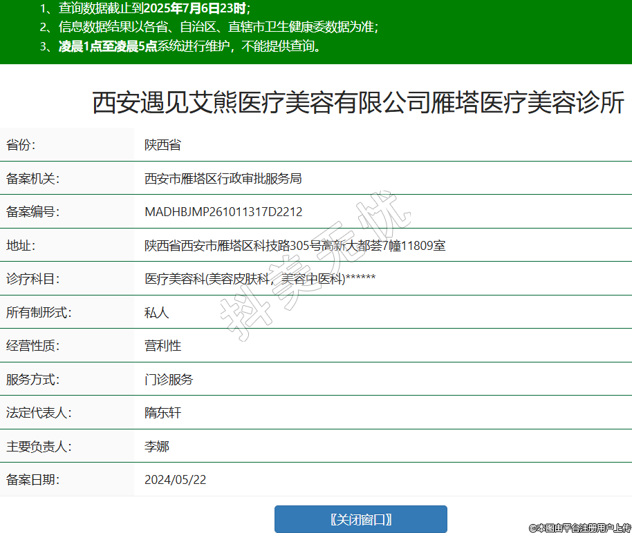 西安遇見艾熊醫(yī)療美容有限公司雁塔醫(yī)療美容診所,診療科目:醫(yī)療美容科(美容皮膚科,美容中醫(yī)科)******