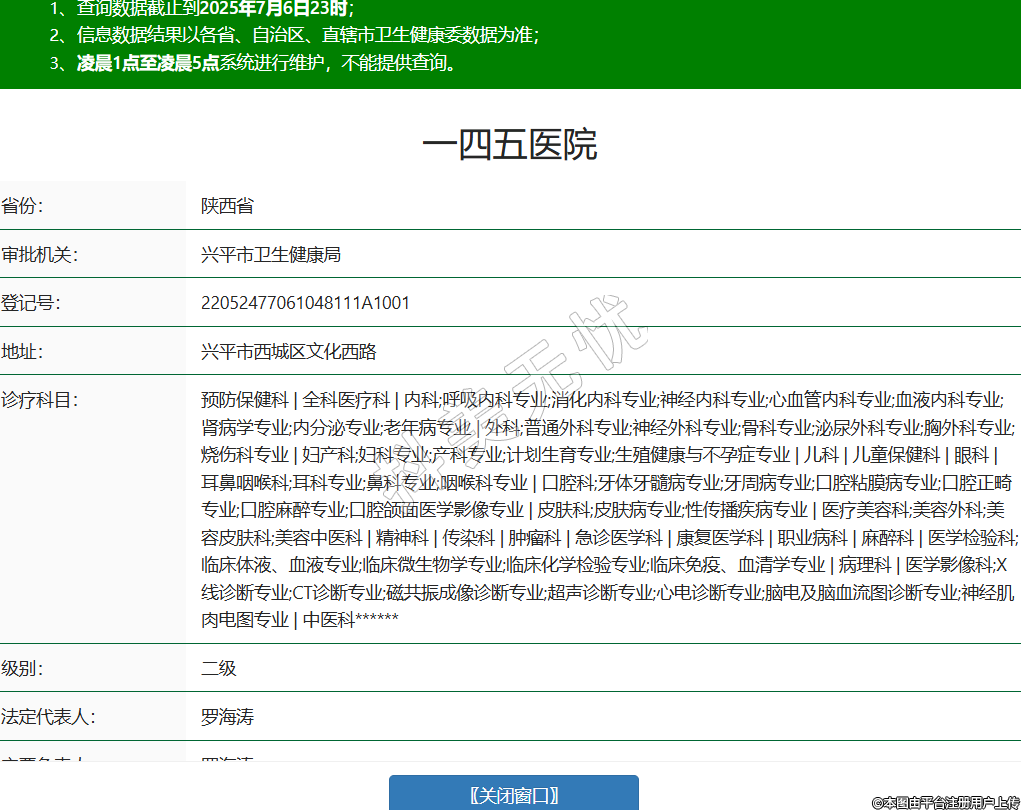 省份:陜西省審批機關(guān):興平市衛(wèi)生健康局登記號:22052477061048111A1001地址:興平市西城區(qū)文化西路診療科目:預防保健科 | 全科醫(yī)療科 | 內(nèi)科;呼吸內(nèi)科專業(yè);消化內(nèi)科專業(yè);神經(jīng)內(nèi)科專業(yè);心血管內(nèi)科專業(yè);血液內(nèi)科專業(yè);腎病學專業(yè);內(nèi)分泌專業(yè);老年病專業(yè) | 外科;普通外科專業(yè);神經(jīng)外科專業(yè);骨科專業(yè);泌尿外科專業(yè);胸外科專業(yè);燒傷科專業(yè) | 婦產(chǎn)科;婦科專業(yè);產(chǎn)科專業(yè);計劃生育專業(yè);生殖健康與不孕癥專業(yè) | 兒科 | 兒童保健科 | 眼科 | 耳鼻咽喉科;耳科專業(yè);鼻科專業(yè);咽喉科專業(yè) | 口腔科;牙體牙髓病專業(yè);牙周病專業(yè);口腔粘膜病專業(yè);口腔正畸專業(yè);口腔麻醉專業(yè);口腔頜面醫(yī)學影像專業(yè) | 皮膚科;皮膚病專業(yè);性傳播疾病專業(yè) | 醫(yī)療美容科;美容外科;美容皮膚科;美容中醫(yī)科 | 精神科 | 傳染科 | 腫瘤科 | 急診醫(yī)學科 | 康復醫(yī)學科 | 職業(yè)病科 | 麻醉科 | 醫(yī)學檢驗科;臨床體液、血液專業(yè);臨床微生物學專業(yè);臨床化學檢驗專業(yè);臨床免疫、血清學專業(yè) | 病理科 | 醫(yī)學影像科;X線診斷專業(yè);CT診斷專業(yè);磁共振成像診斷專業(yè);超聲診斷專業(yè);心電診斷專業(yè);腦電及腦血流圖診斷專業(yè);神經(jīng)肌肉電圖專業(yè) | 中醫(yī)科******級別:二級法定代表人:羅海濤主要負責人:羅海濤執(zhí)業(yè)許可證有效期:2024/05/14 -至- 2029/05/14 -