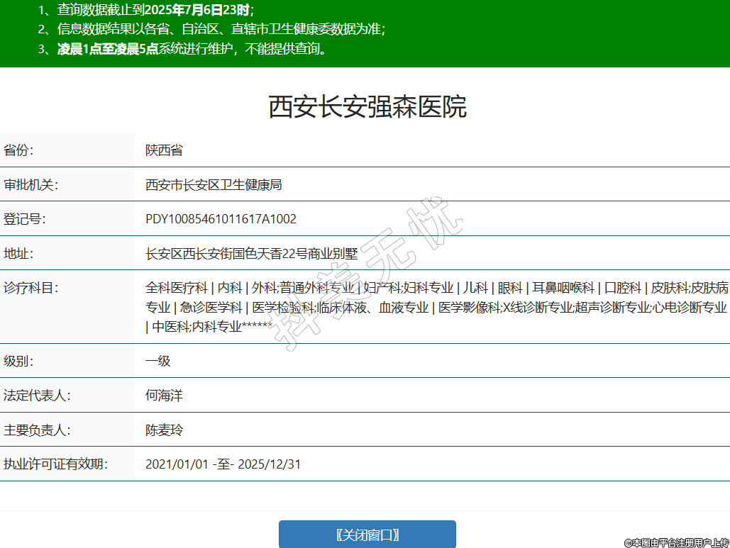 省份:陜西省審批機(jī)關(guān):西安市長安區(qū)衛(wèi)生健康局登記號:PDY10085461011617A1002地址:長安區(qū)西長安街國色天香22號商業(yè)別墅診療科目:全科醫(yī)療科 | 內(nèi)科 | 外科;普通外科專業(yè) | 婦產(chǎn)科;婦科專業(yè) | 兒科 | 眼科 | 耳鼻咽喉科 | 口腔科 | 皮膚科;皮膚病專業(yè) | 急診醫(yī)學(xué)科 | 醫(yī)學(xué)檢驗(yàn)科;臨床體液、血液專業(yè) | 醫(yī)學(xué)影像科;X線診斷專業(yè);超聲診斷專業(yè);心電診斷專業(yè) | 中醫(yī)科;內(nèi)科專業(yè)******級別:一級法定代表人:何海洋主要負(fù)責(zé)人:陳麥玲執(zhí)業(yè)許可證有效期:2021/01/01 -至- 2025/12/31 -