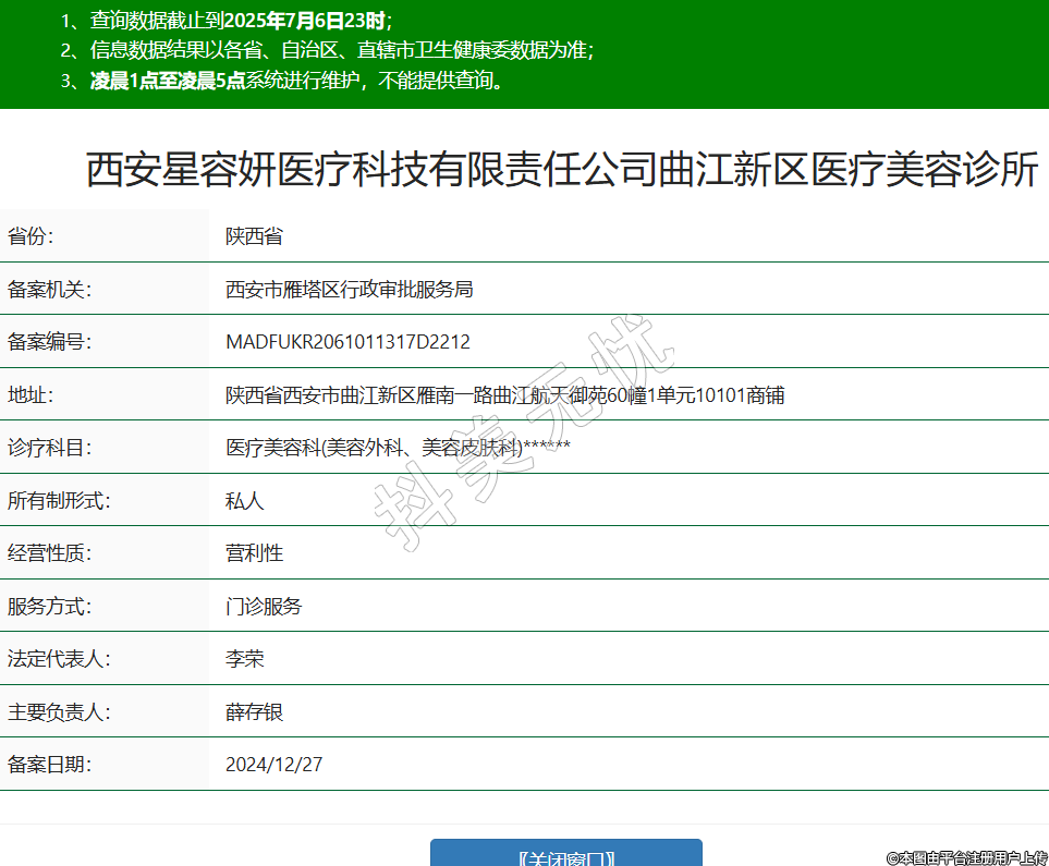 西安星容妍醫(yī)療科技有限責(zé)任公司曲江新區(qū)醫(yī)療美容診所