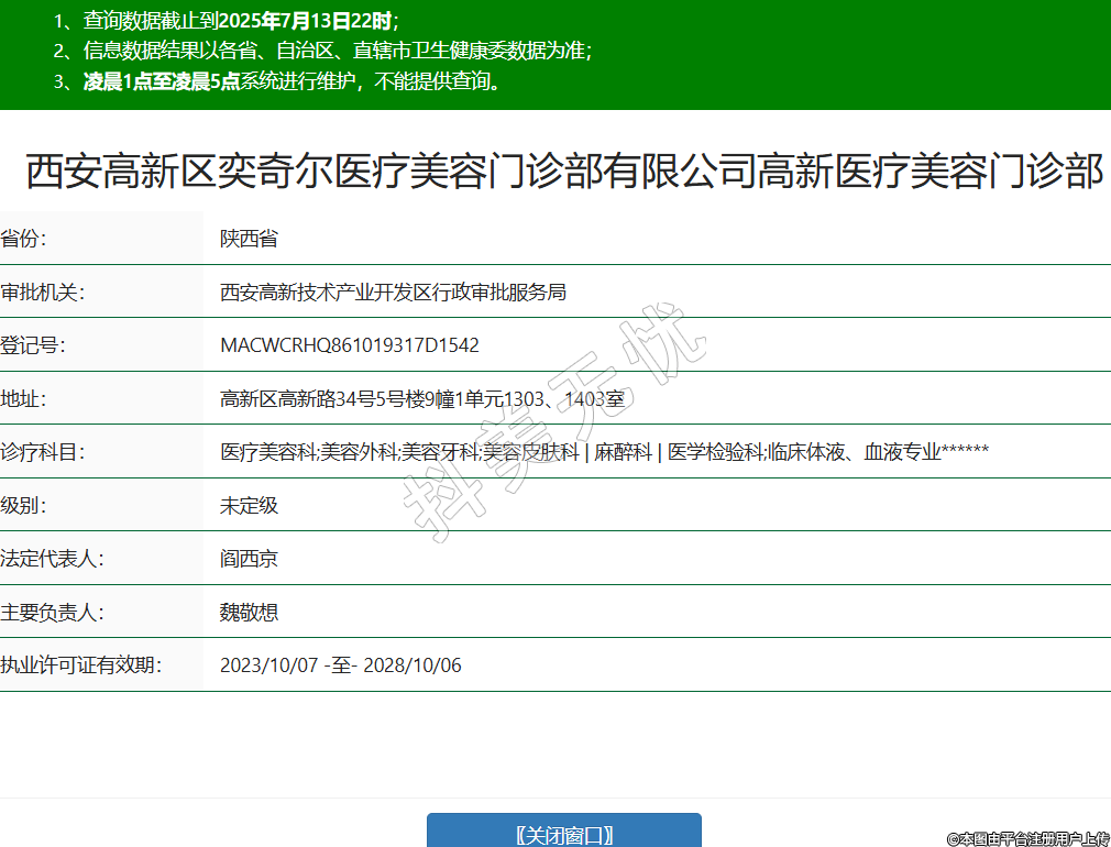 西安高新區(qū)奕奇爾醫(yī)療美容門診部有限公司高新醫(yī)療美容門診部