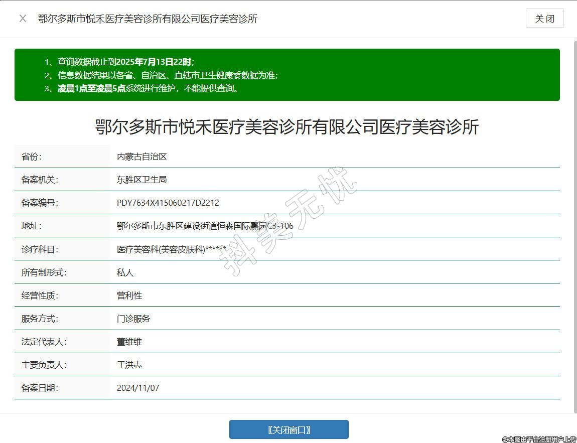 鄂爾多斯市悅禾醫(yī)療美容診所有限公司醫(yī)療美容診所