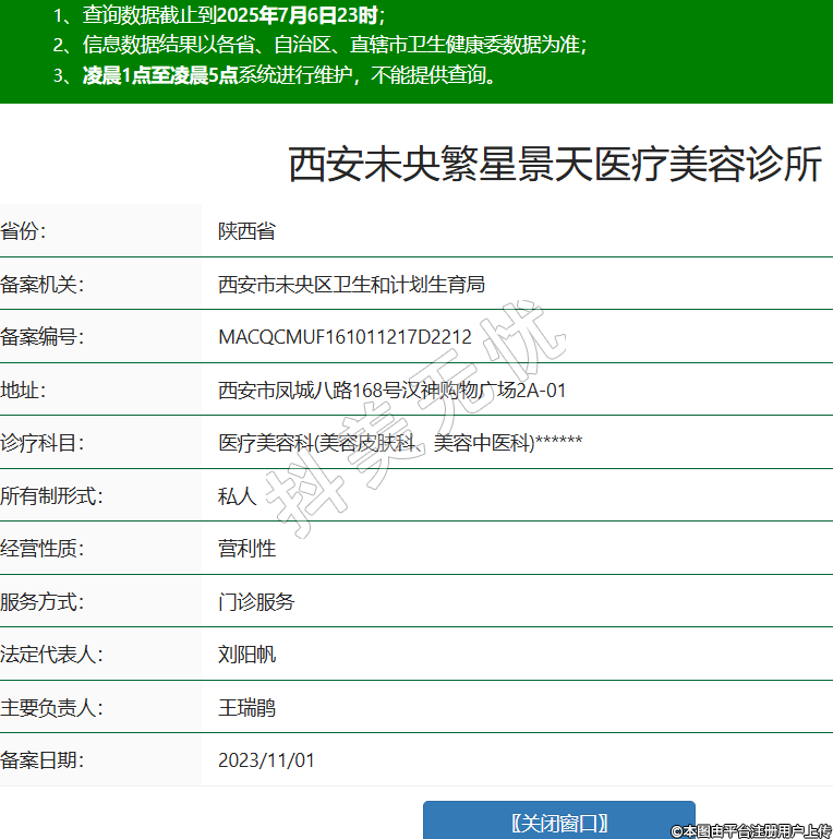 省份:陜西省備案機關(guān):西安市未央?yún)^(qū)衛(wèi)生和計劃生育局備案編號:MACQCMUF161011217D2212地址:西安市鳳城八路168號漢神購物廣場2A-01診療科目:醫(yī)療美容科(美容皮膚科、美容中醫(yī)科)******所有制形式:私人經(jīng)營性質(zhì):營利性服務(wù)方式:門診服務(wù)法定代表人:劉陽帆主要負(fù)責(zé)人:王瑞鵑備案日期:2023/11/01 -