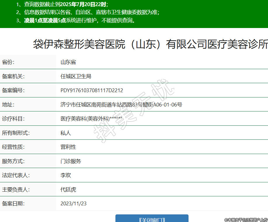 袋伊森整形美容醫(yī)院(山東)有限公司醫(yī)療美容診所