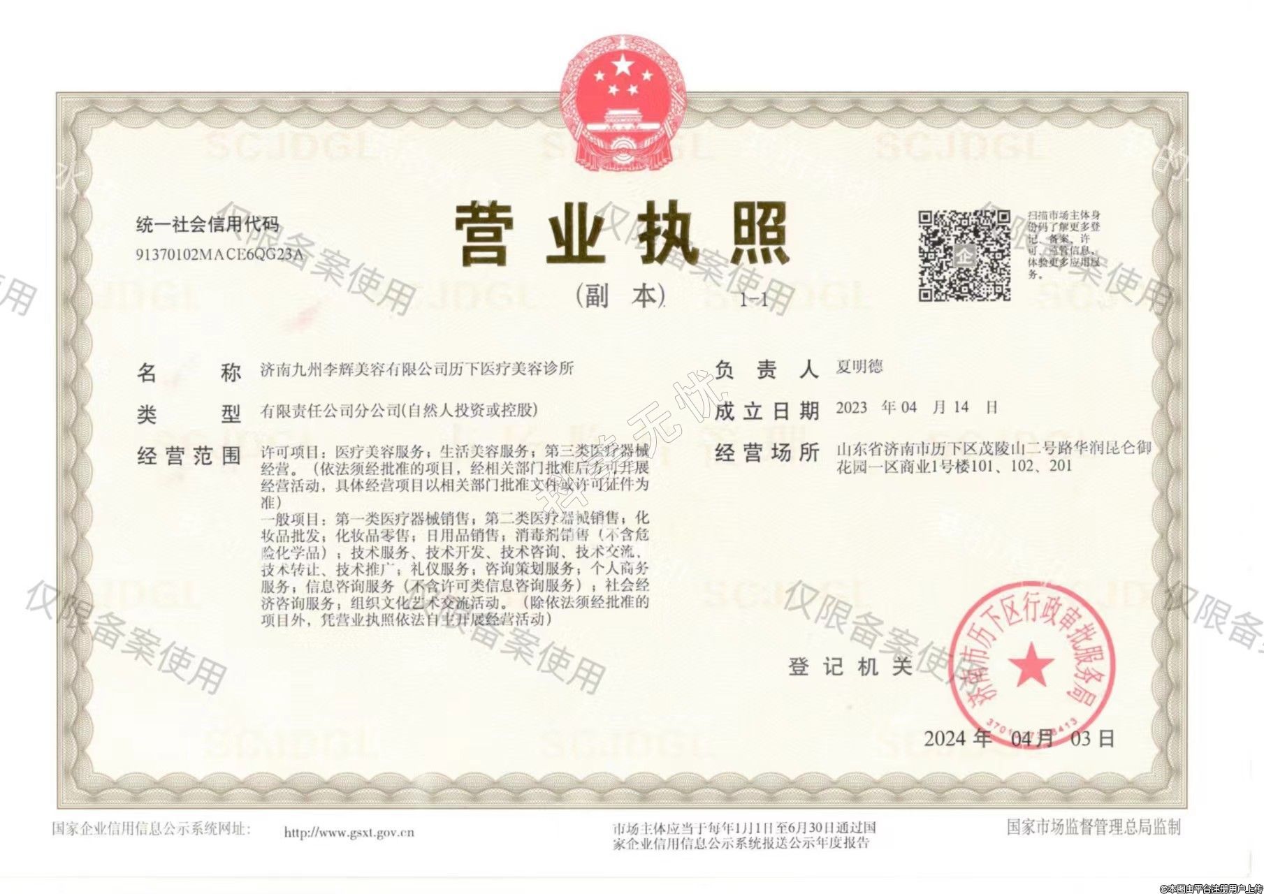 備案機關(guān):濟(jì)南市歷下區(qū)衛(wèi)生健康局