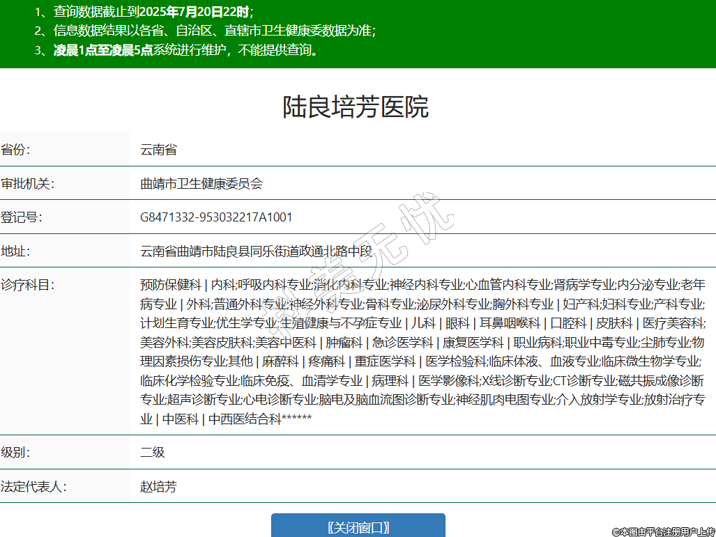 省份:云南省審批機關:曲靖市衛(wèi)生健康委員會登記號:G8471332-953032217A1001地址:云南省曲靖市陸良縣同樂街道政通北路中段診療科目:預防保健科 | 內科;呼吸內科專業(yè);消化內科專業(yè);神經內科專業(yè);心血管內科專業(yè);腎病學專業(yè);內分泌專業(yè);老年病專業(yè) | 外科;普通外科專業(yè);神經外科專業(yè);骨科專業(yè);泌尿外科專業(yè);胸外科專業(yè) | 婦產科;婦科專業(yè);產科專業(yè);計劃生育專業(yè);優(yōu)生學專業(yè);生殖健康與不孕癥專業(yè) | 兒科 | 眼科 | 耳鼻咽喉科 | 口腔科 | 皮膚科 | 醫(yī)療美容科;美容外科;美容皮膚科;美容中醫(yī)科 | 腫瘤科 | 急診醫(yī)學科 | 康復醫(yī)學科 | 職業(yè)病科;職業(yè)中毒專業(yè);塵肺專業(yè);物理因素損傷專業(yè);其他 | 麻醉科 | 疼痛科 | 重癥醫(yī)學科 | 醫(yī)學檢驗科;臨床體液、血液專業(yè);臨床微生物學專業(yè);臨床化學檢驗專業(yè);臨床免疫、血清學專業(yè) | 病理科 | 醫(yī)學影像科;X線診斷專業(yè);CT診斷專業(yè);磁共振成像診斷專業(yè);超聲診斷專業(yè);心電診斷專業(yè);腦電及腦血流圖診斷專業(yè);神經肌肉電圖專業(yè);介入放射學專業(yè);放射治療專業(yè) | 中醫(yī)科 | 中西醫(yī)結合科******級別:二級法定代表人:趙培芳主要負責人:趙培芳執(zhí)業(yè)許可證有效期:2022/12/31 -至- 2037/12/30 -