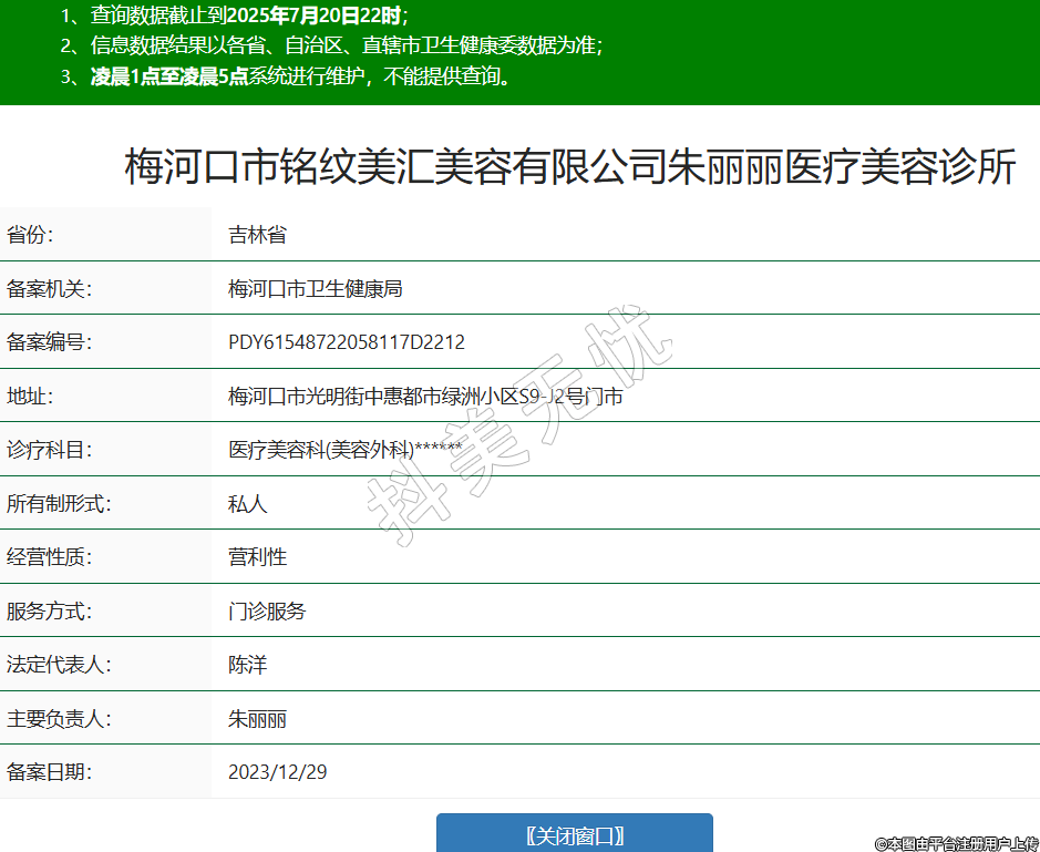 梅河口市銘紋美匯美容有限公司朱麗麗醫(yī)療美容診所