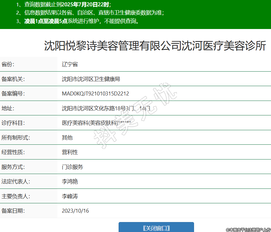 沈陽悅黎詩美容管理有限公司沈河醫(yī)療美容診所