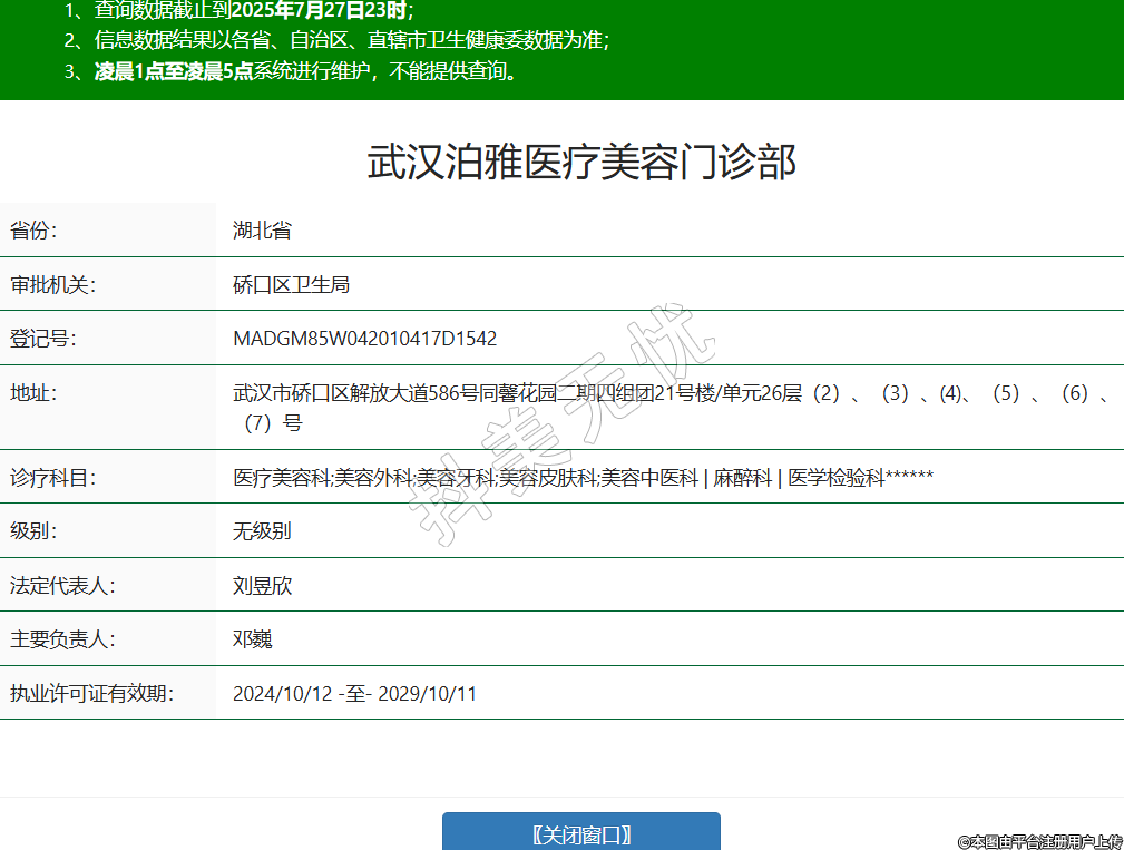 武漢泊雅醫(yī)療美容門診部,診療科目:醫(yī)療美容科;美容外科;美容牙科;美容皮膚科;美容中醫(yī)科 | 麻醉科 | 醫(yī)學(xué)檢驗科******