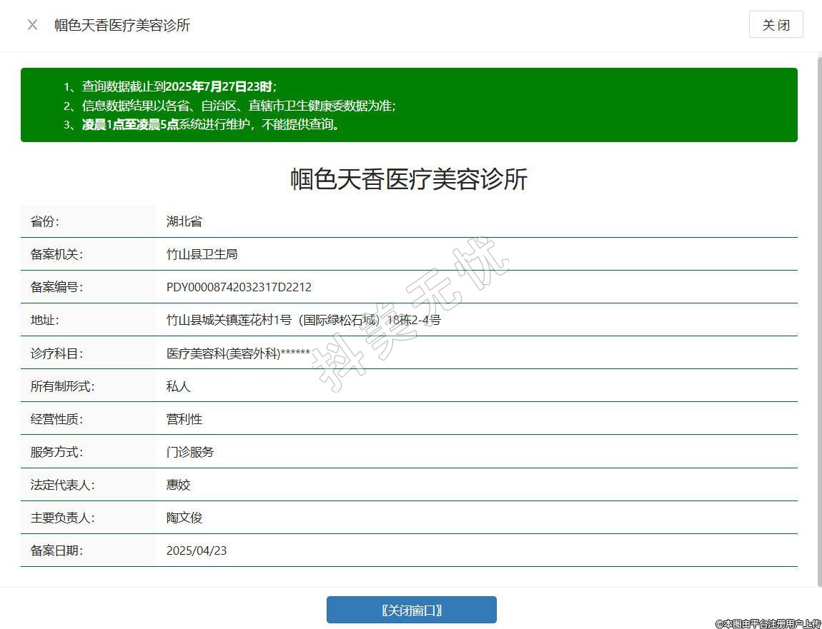 十堰幗色天香醫(yī)療美容診所成立于2024年,坐落于湖北省十堰市竹山縣城關(guān)鎮(zhèn)蓮花村1號(國際綠松石城)18棟2-4號,提供皮膚管理、微整形、抗衰老等多元化服務(wù),配備先進(jìn)儀器及創(chuàng)新技術(shù),由資深醫(yī)美團(tuán)隊定制個性化方案,兼顧美學(xué)設(shè)計與醫(yī)療安全,致力于通過專業(yè)服務(wù)與科技賦能,助力每位求美者綻放獨特魅力。