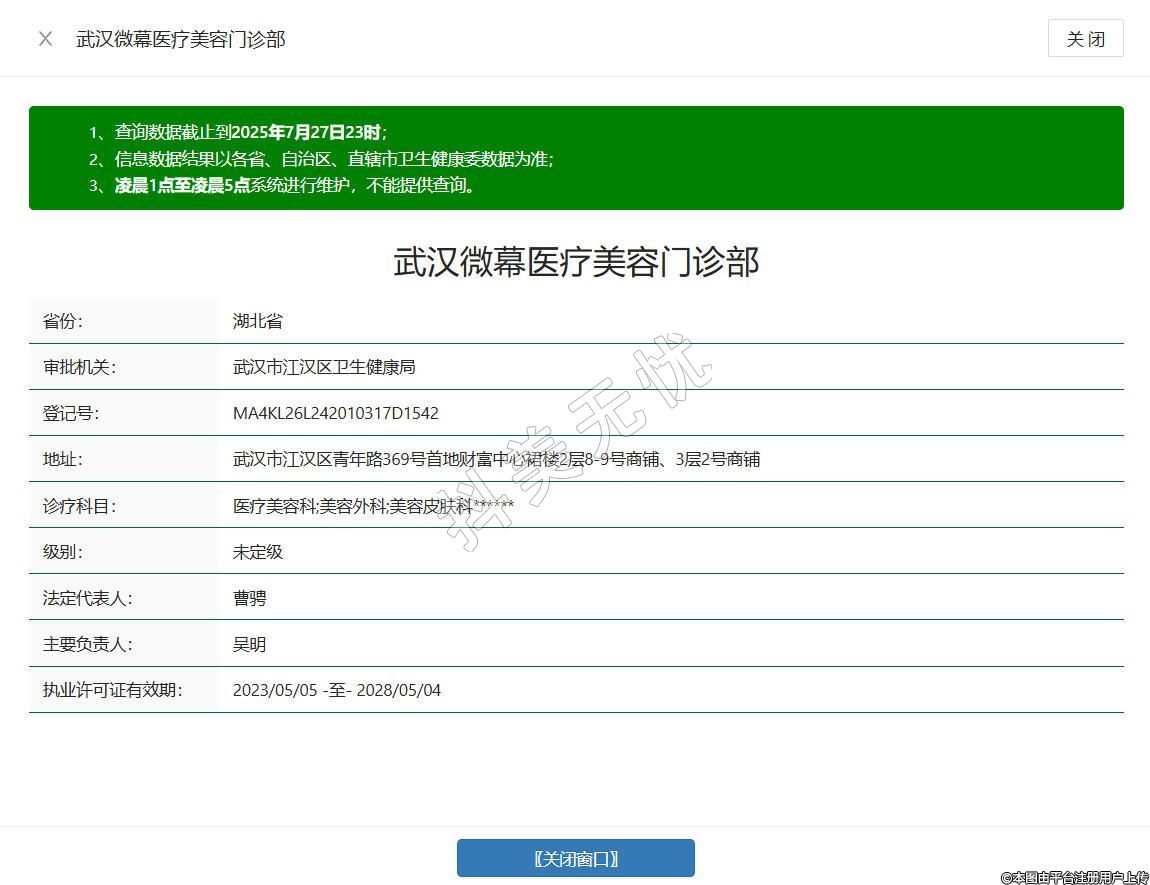 2023/05/05 -至- 2028/05/04 武漢減博士醫(yī)療美容門診部