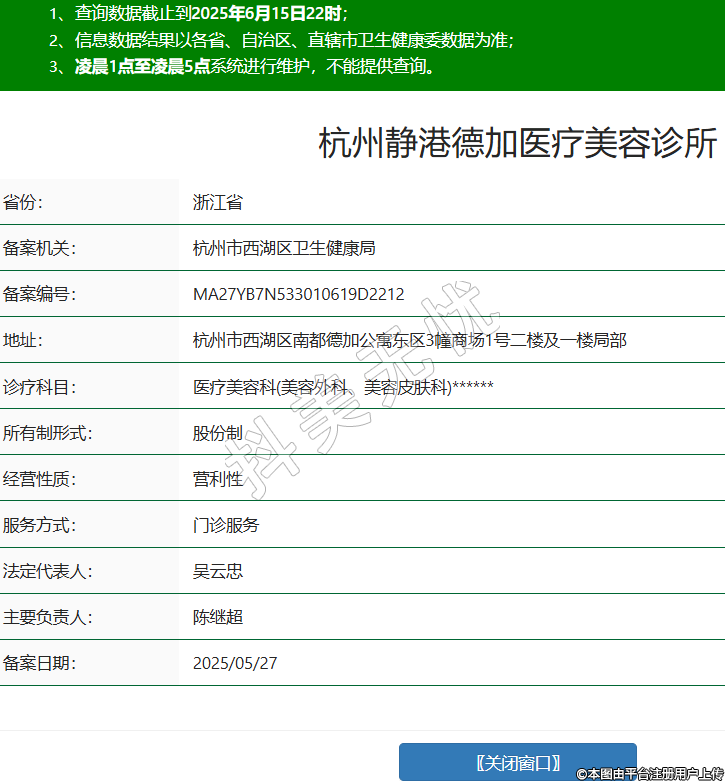 省份:浙江省備案機(jī)關(guān):杭州市西湖區(qū)衛(wèi)生健康局備案編號(hào):MA27YB7N533010619D2212地址:杭州市西湖區(qū)南都德加公寓東區(qū)3幢商場(chǎng)1號(hào)二樓及一樓局部診療科目:醫(yī)療美容科(美容外科、美容皮膚科)******所有制形式:股份制經(jīng)營(yíng)性質(zhì):營(yíng)利性服務(wù)方式:門診服務(wù)法定代表人:吳云忠主要負(fù)責(zé)人:陳繼超備案日期:2025/05/27 -