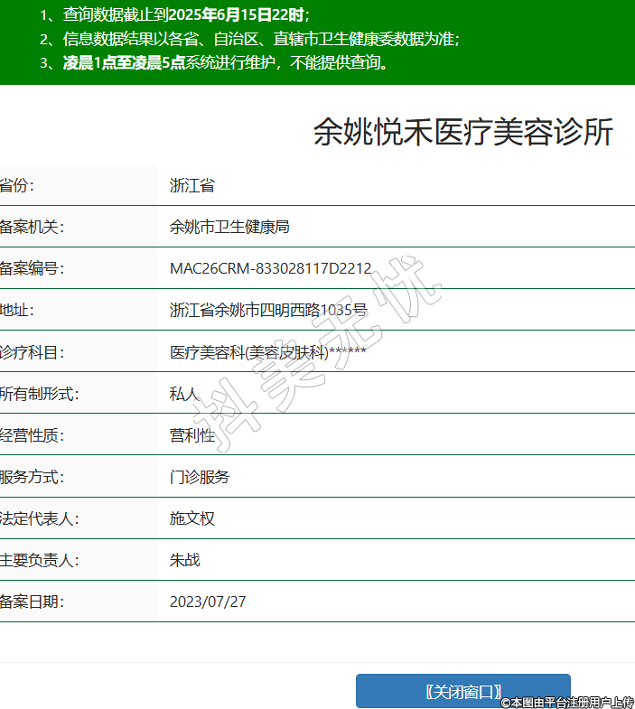省份:浙江省備案機關:余姚市衛(wèi)生健康局備案編號:MAC26CRM-833028117D2212地址:浙江省余姚市四明西路1035號診療科目:醫(yī)療美容科(美容皮膚科)******所有制形式:私人經營性質:營利性服務方式:門診服務法定代表人:施文權主要負責人:朱戰(zhàn)備案日期:2023/07/27 -