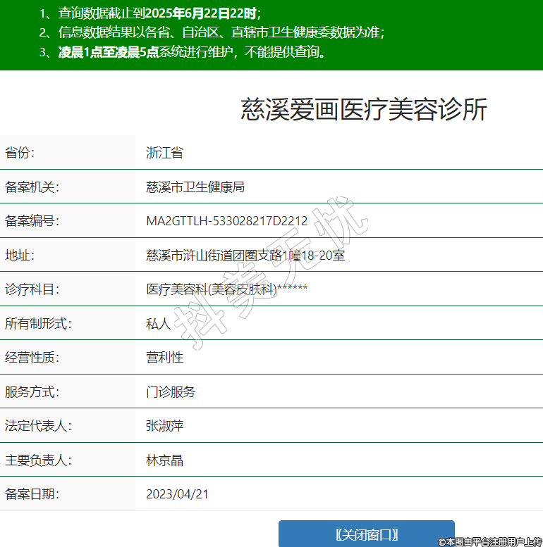 省份:浙江省備案機關:慈溪市衛(wèi)生健康局備案編號:MA2GTTLH-533028217D2212地址:慈溪市滸山街道團圈支路1幢18-20室診療科目:醫(yī)療美容科(美容皮膚科)******所有制形式:私人經(jīng)營性質(zhì):營利性服務方式:門診服務法定代表人:張淑萍主要負責人:林京晶備案日期:2023/04/21 -