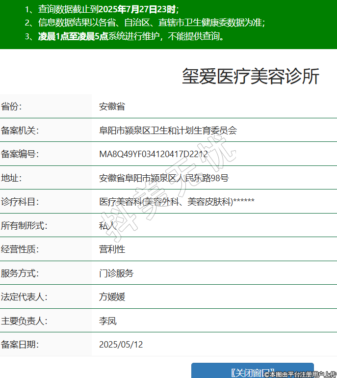 省份:安徽省備案機關:阜陽市潁泉區(qū)衛(wèi)生和計劃生育委員會備案編號:MA8Q49YF034120417D2212地址:安徽省阜陽市潁泉區(qū)人民東路98號診療科目:醫(yī)療美容科(美容外科、美容皮膚科)******所有制形式:私人經營性質:營利性服務方式:門診服務法定代表人:方媛媛主要負責人:李鳳備案日期:2025/05/12 -